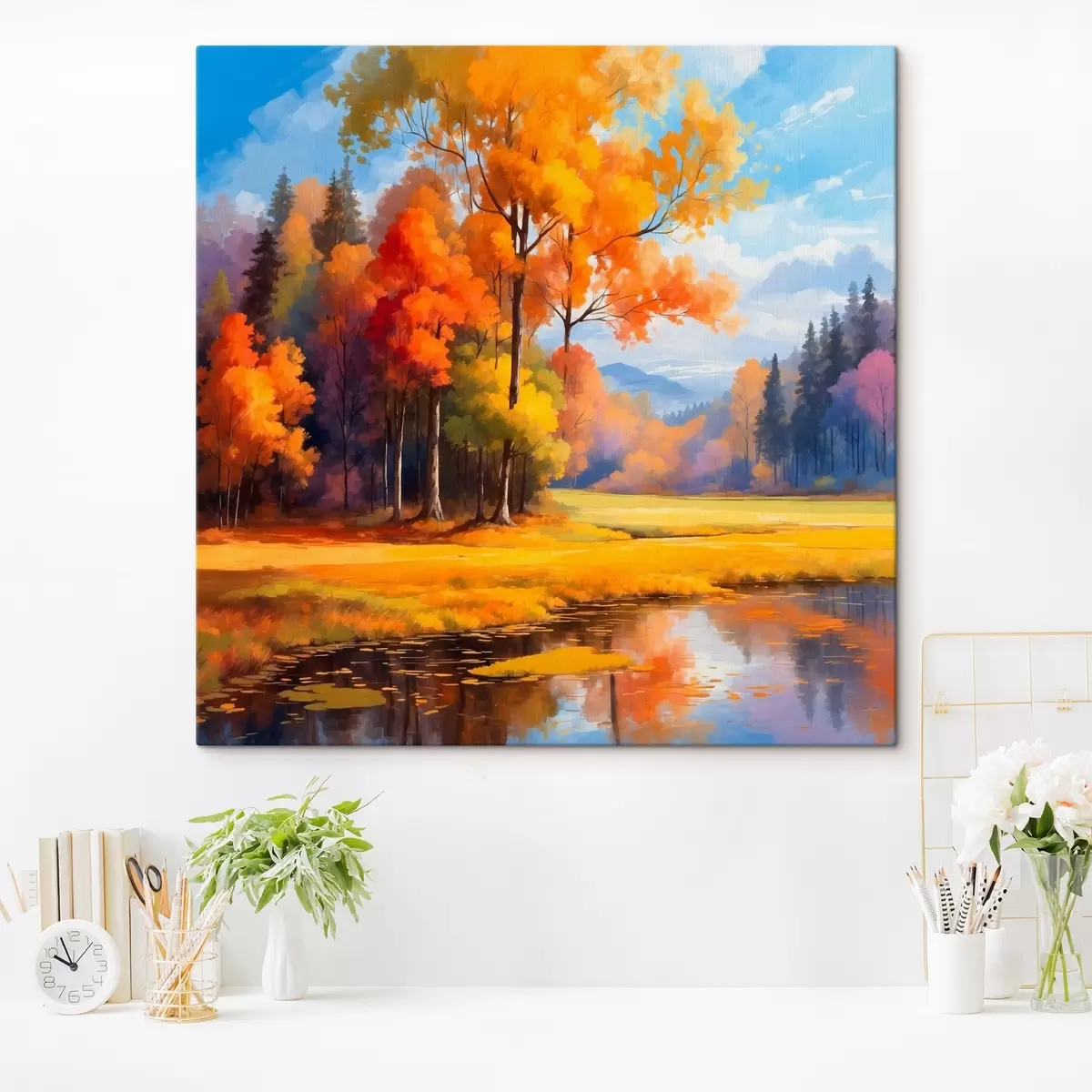 Tableau Lac et forêt d'automne en style acrylique s41766