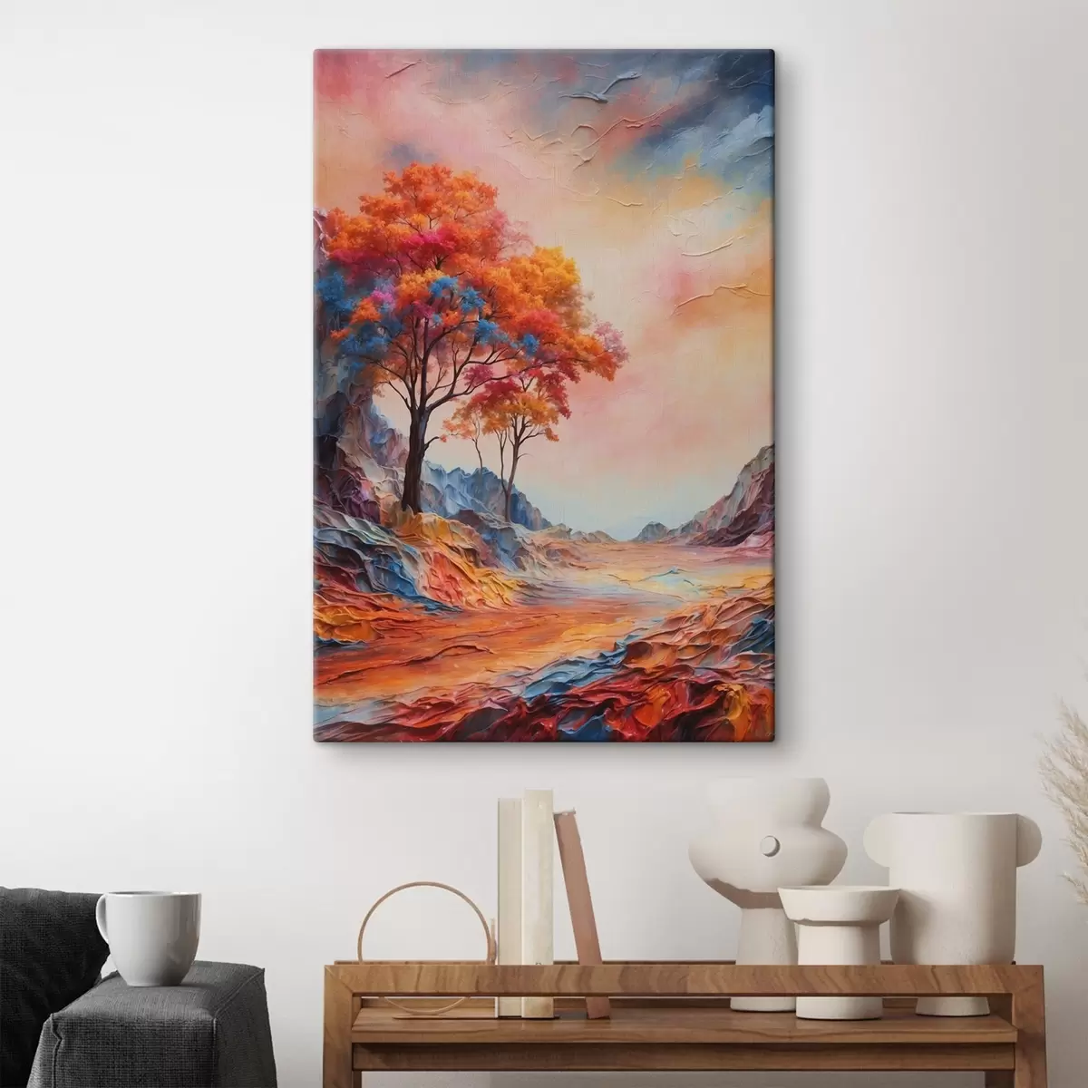 Tableau Arbres et montagnes abstraites multicolores s41772