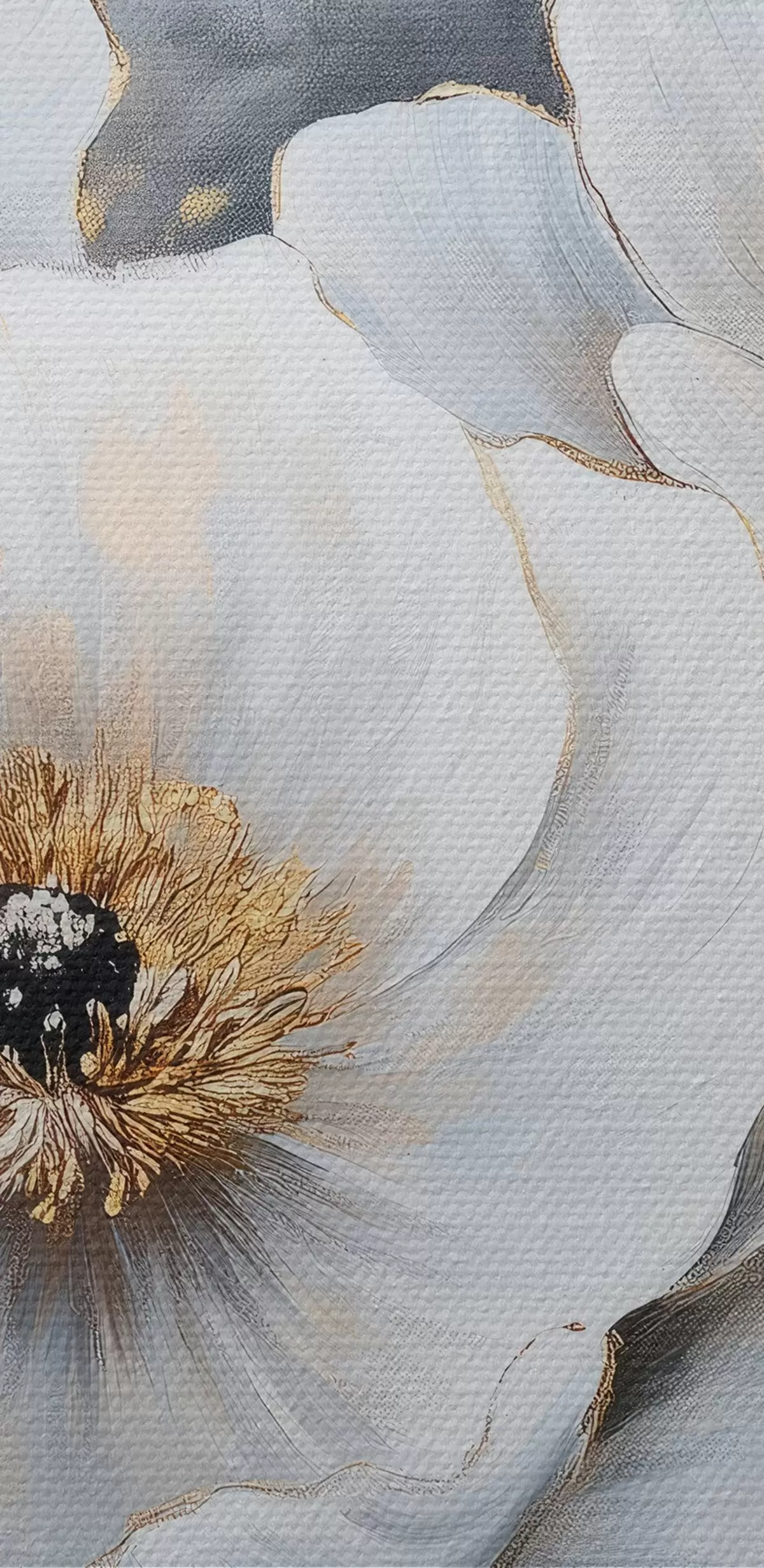 Tableau Fleurs blanches et délicates sur fond de touches de peinture à l'huile Nr s41833