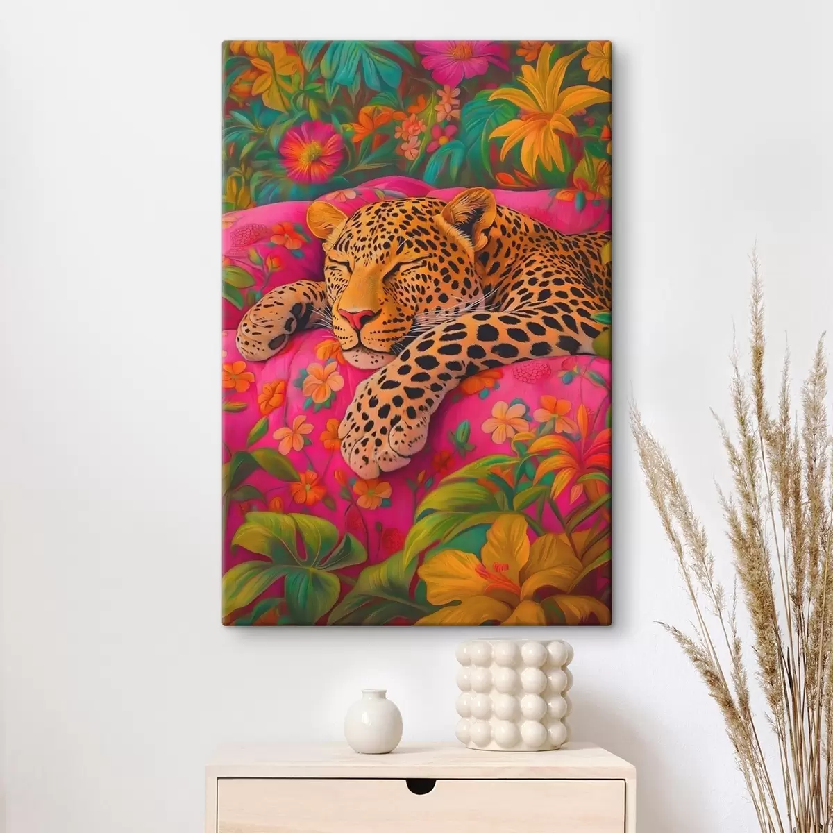 Tableau Léopard endormi parmi les fleurs Nr s41929