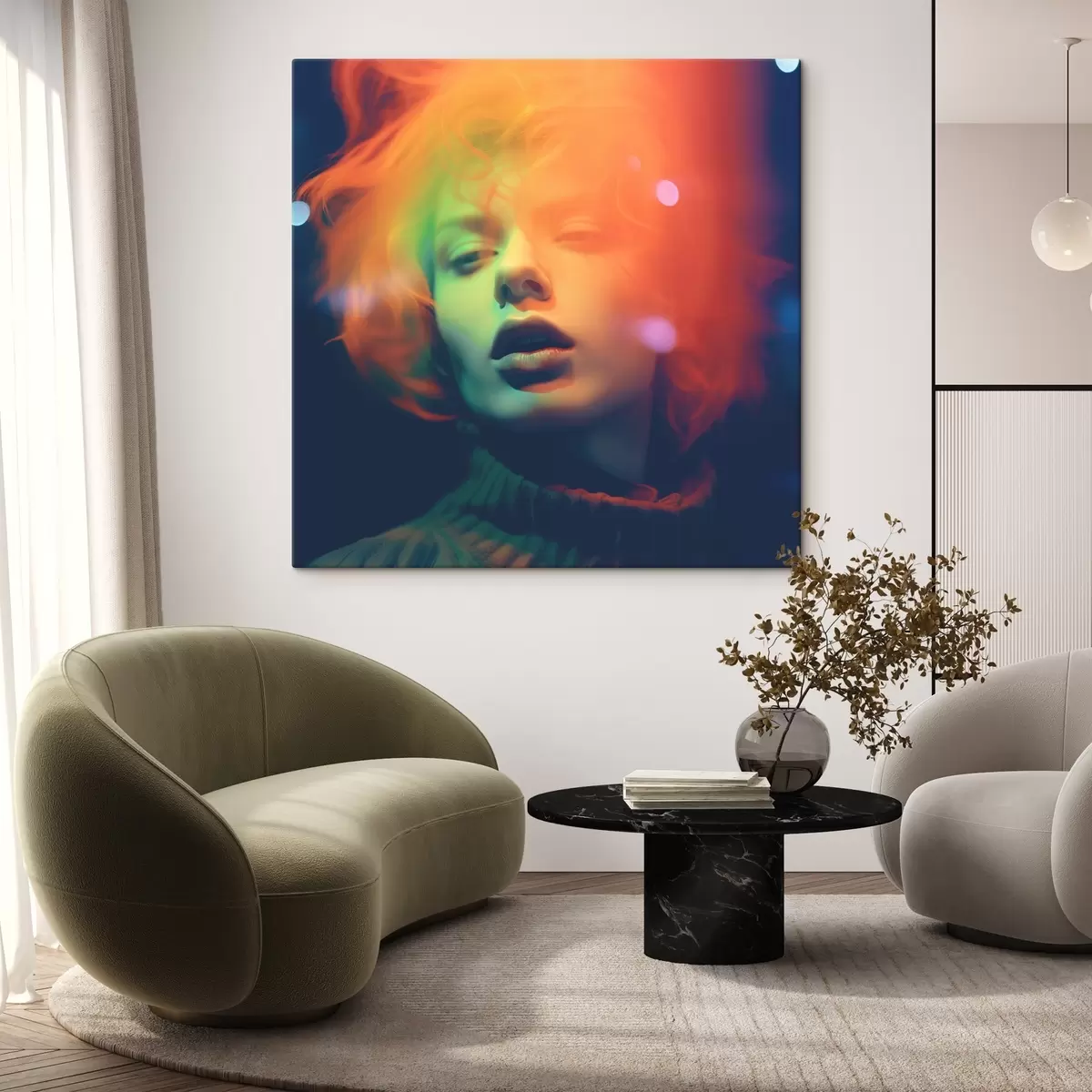 Tableau Portrait aux couleurs vives sur fond sombre s41942