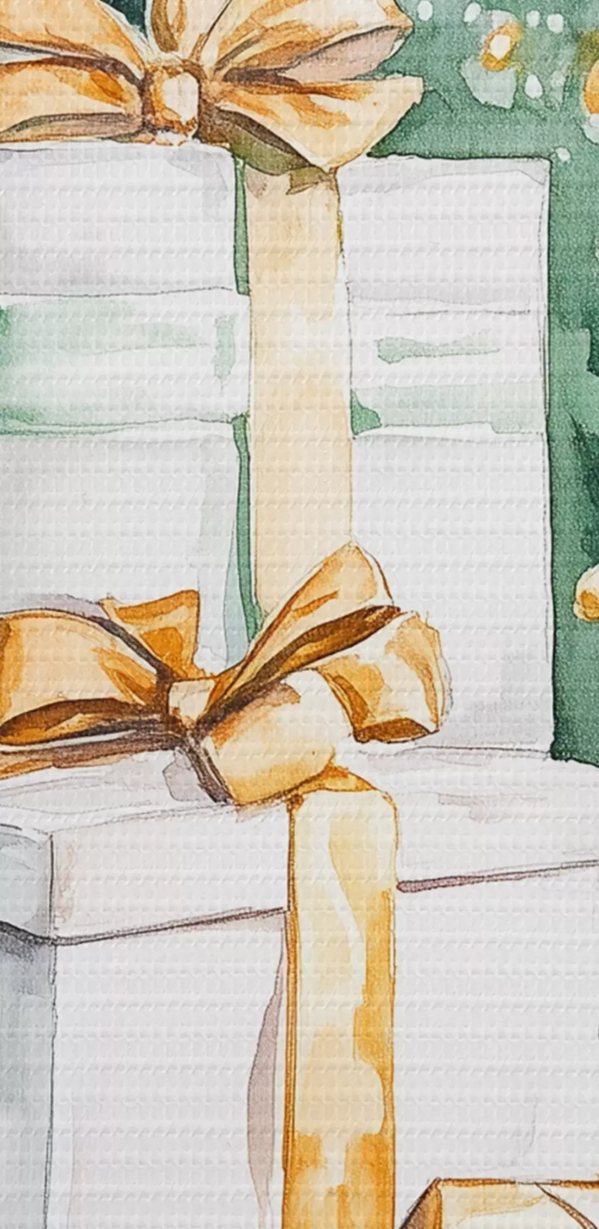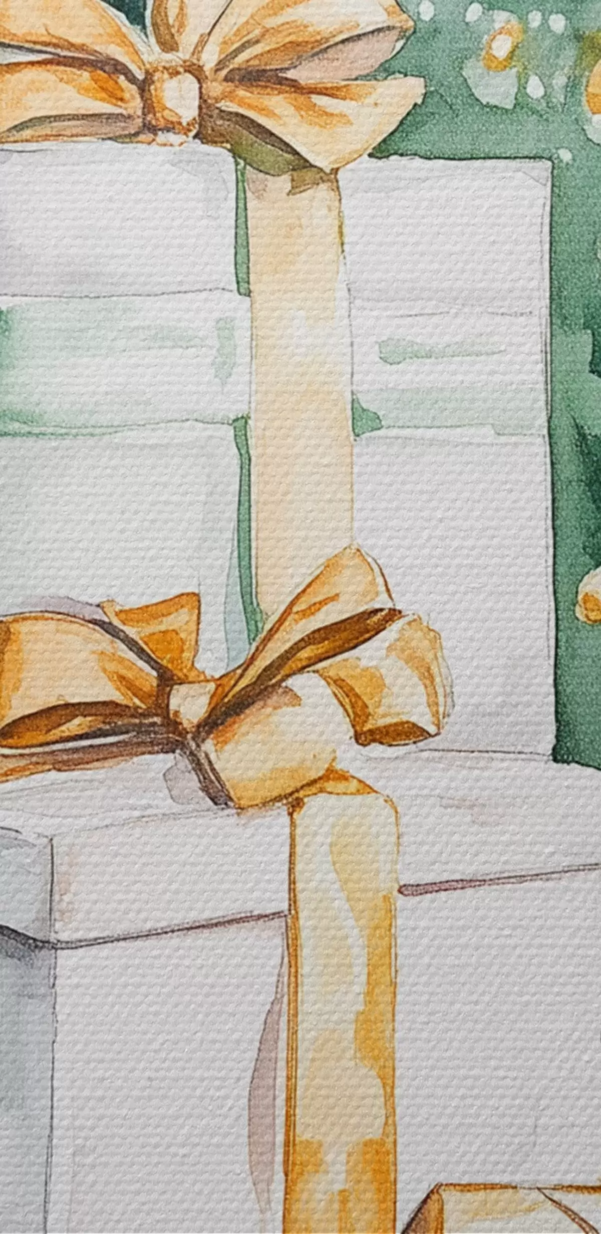 Tableau Arbre de Noël avec des cadeaux emballés, style aquarelle, festif s41944