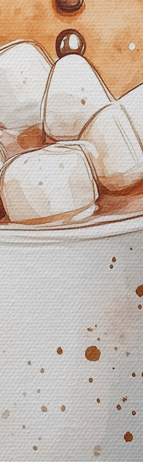Tableau Bonhommes de pain d'épices dans la tasse de café, cannelle, guimauves, style aquarelle, beige Nr s41948