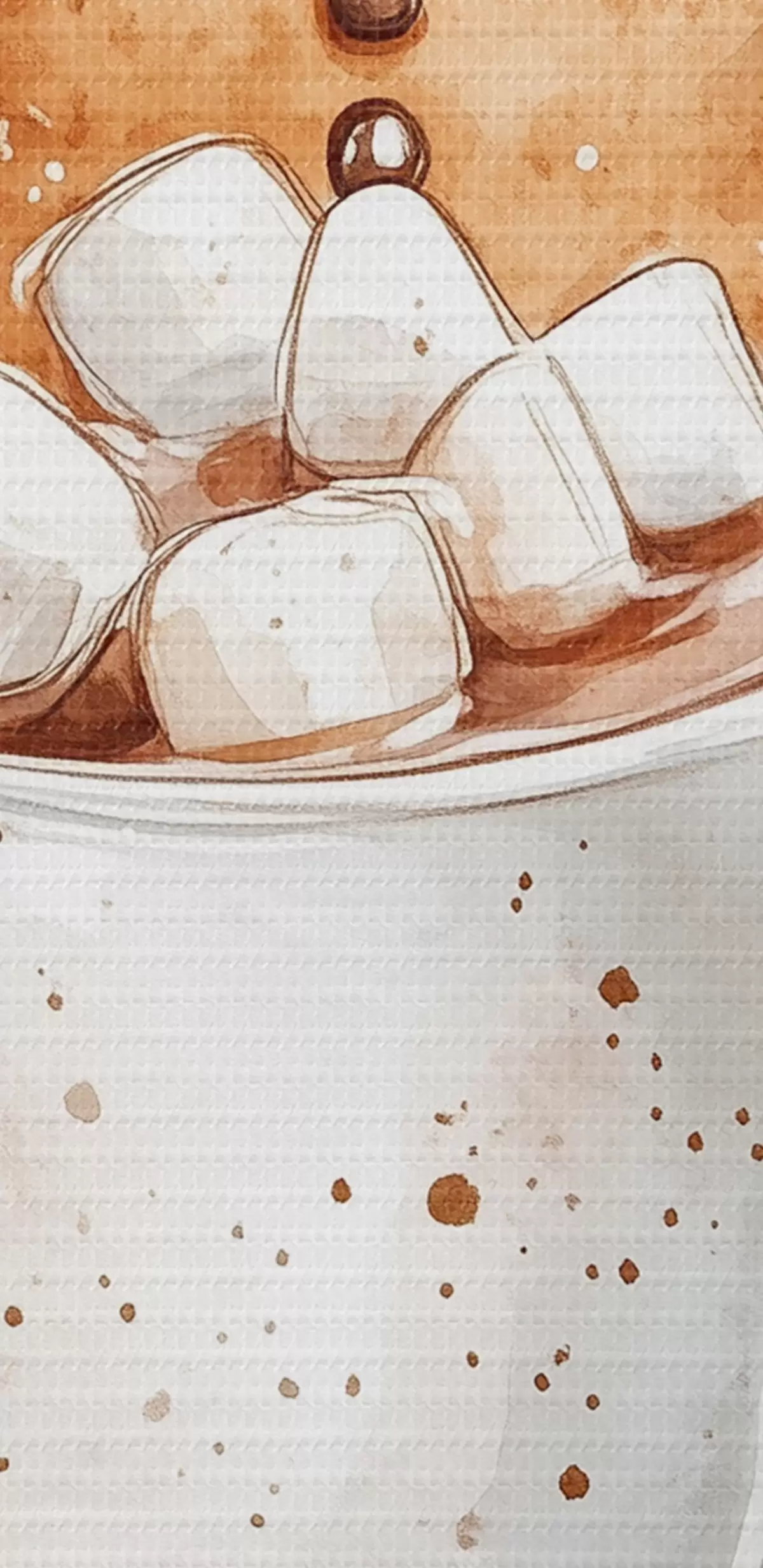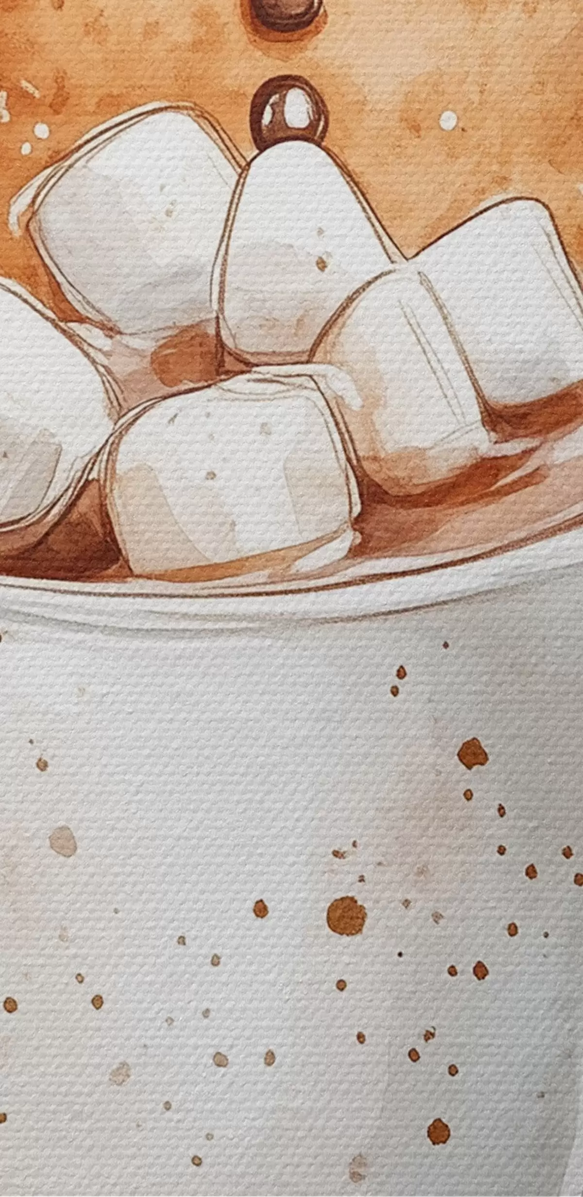 Tableau Bonhommes de pain d'épices dans la tasse de café, cannelle, guimauves, style aquarelle, beige s41948