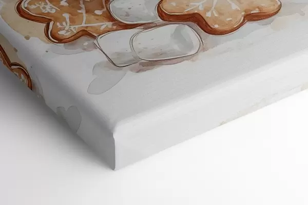 Tableau Bonhommes de pain d'épices dans la tasse de café, cannelle, guimauves, style aquarelle, beige s41948
