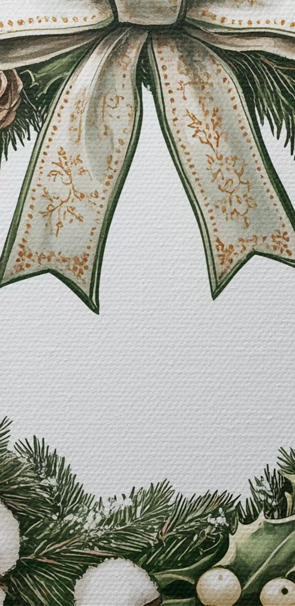 Tableau Couronne de Noël avec coton, oranges, baies sauvages et cônes, style aquarelle Nr s41954