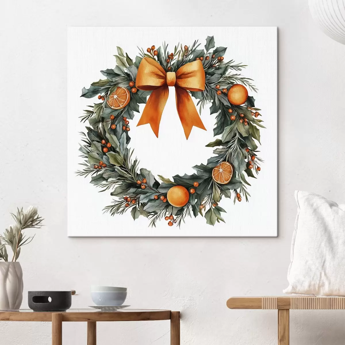 Tableau Magnifique couronne de fête avec du pin, des oranges, des baies et un nœud Nr s41955