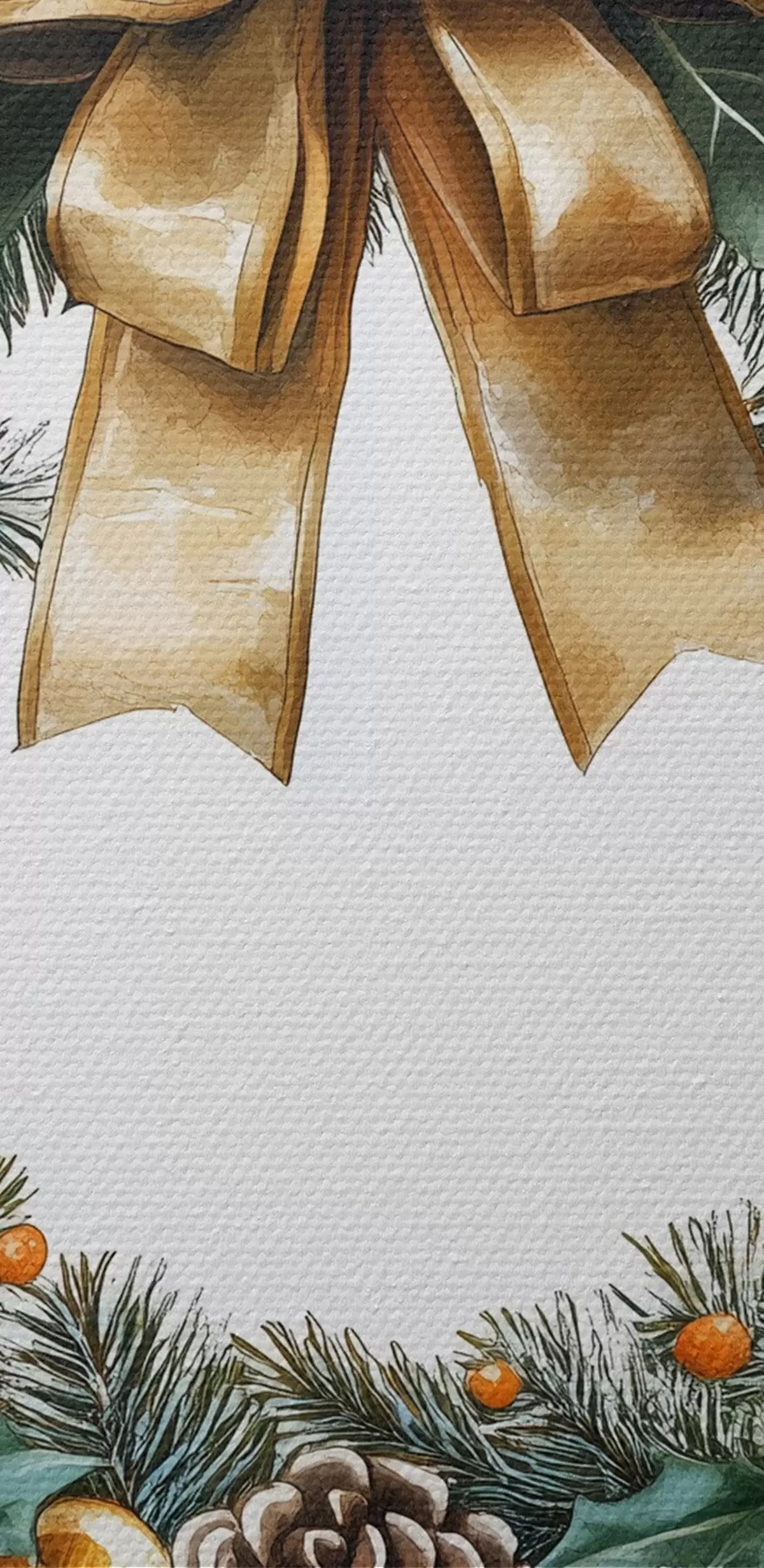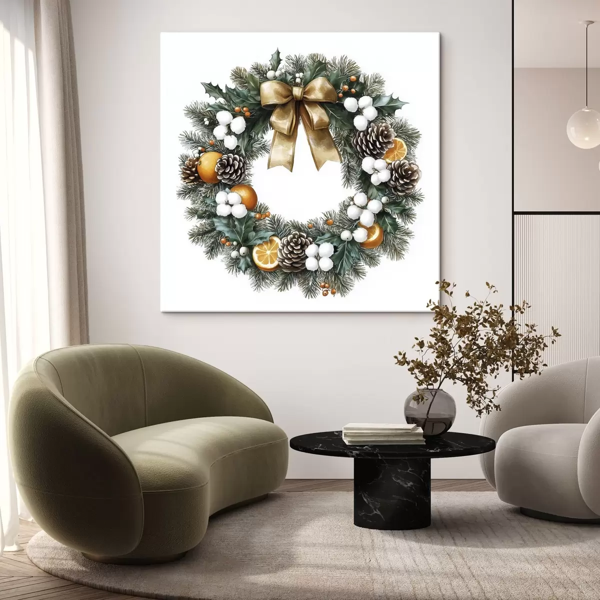Tableau Couronne de Noël en pin avec nœud, coton, oranges, baies et cônes s41962