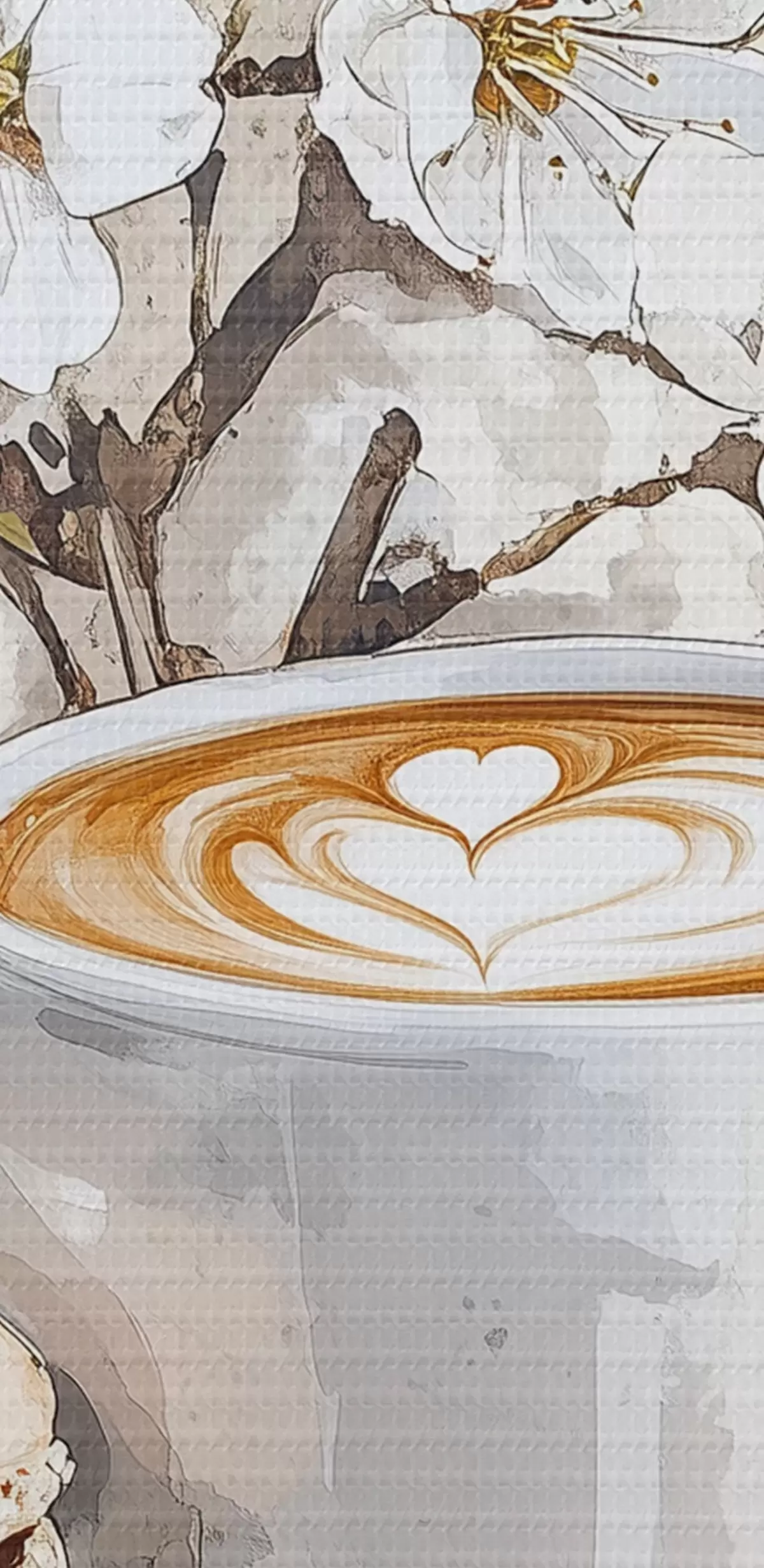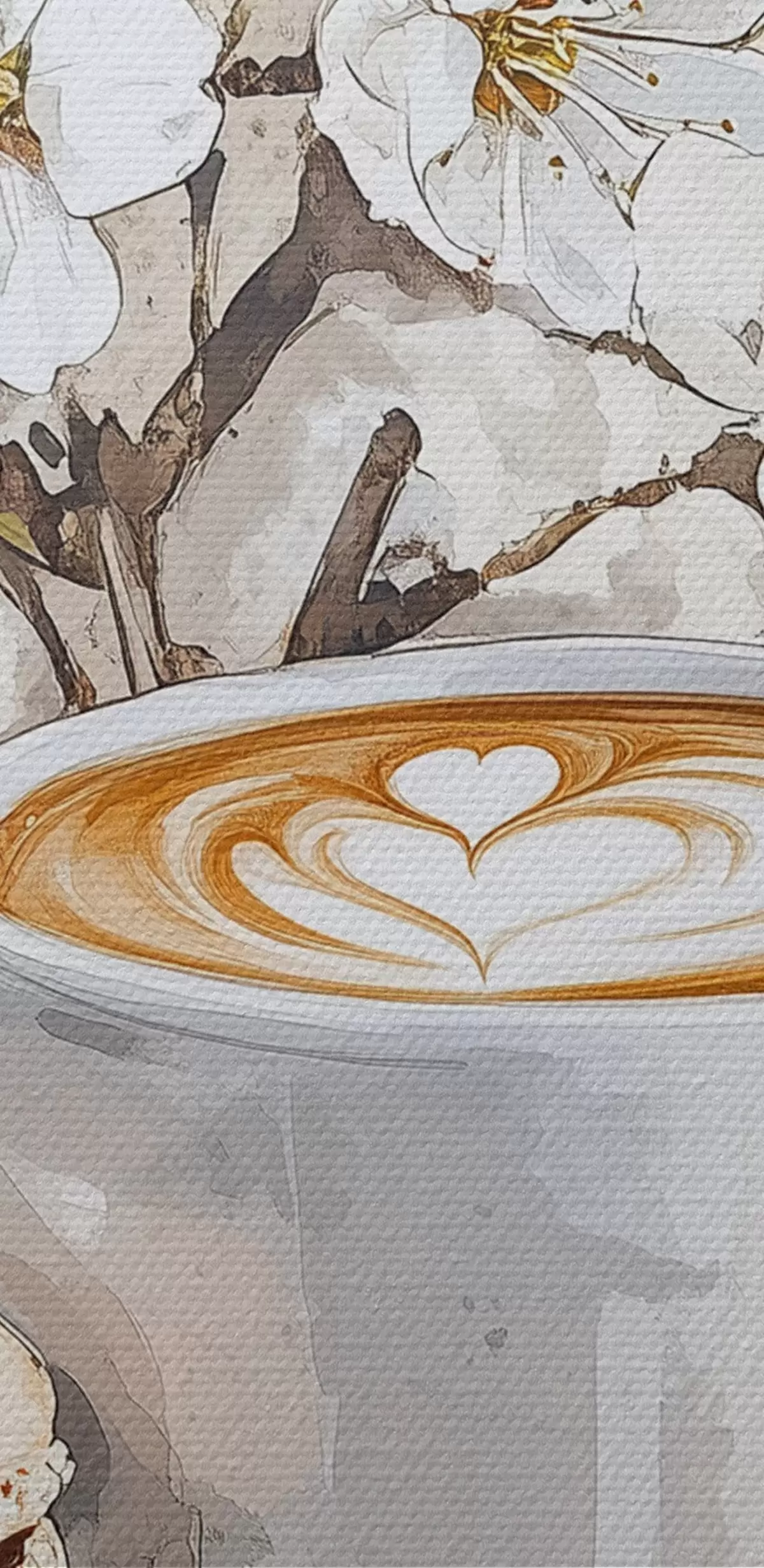 Tableau Belle tasse de café, fleurs de jasmin, macarons, couleurs douces de l'aquarelle Nr s41964