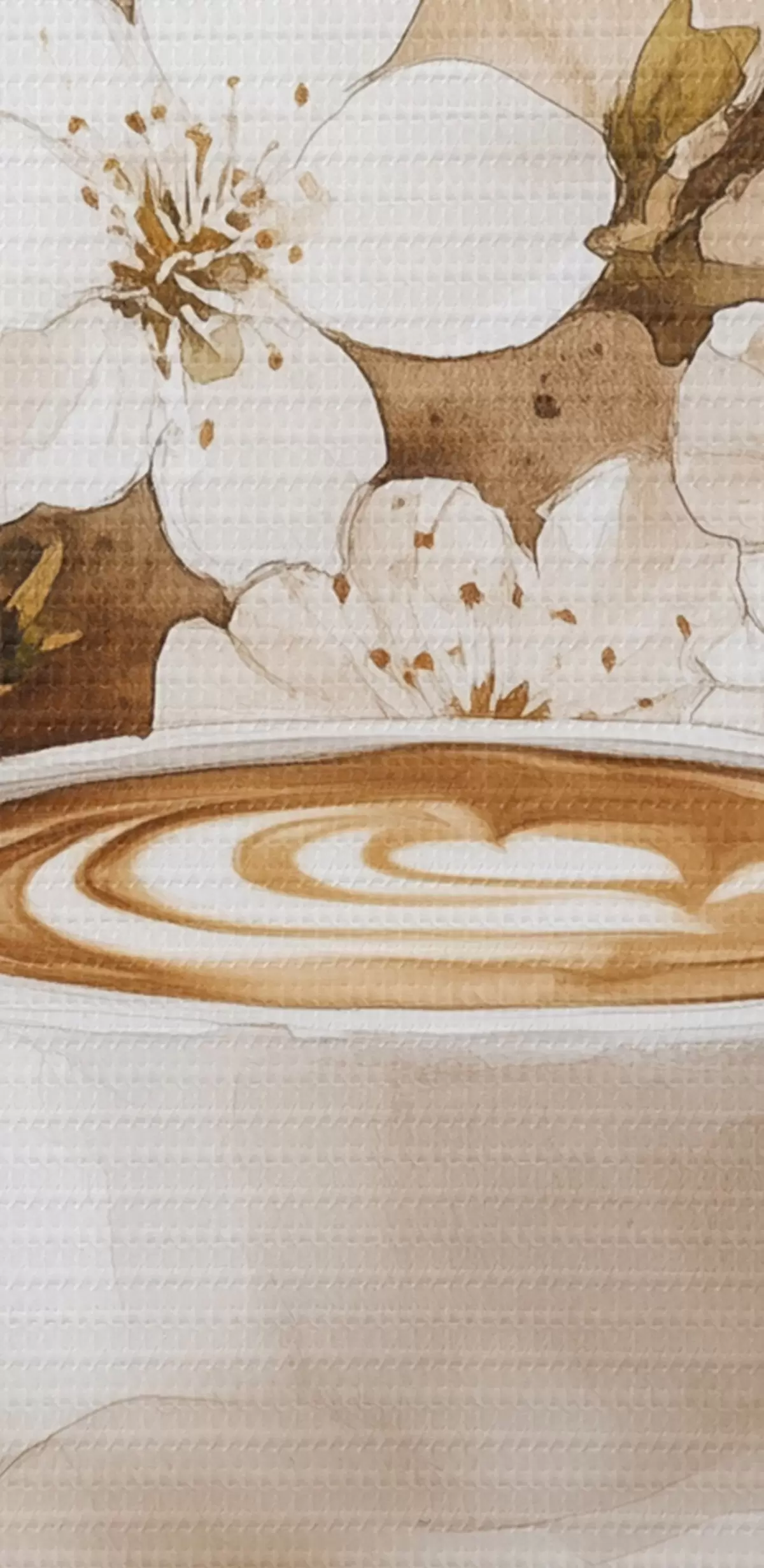 Tableau Macarons, tasse de café, style aquarelle, couleurs beiges, fleurs de jasmin s41965