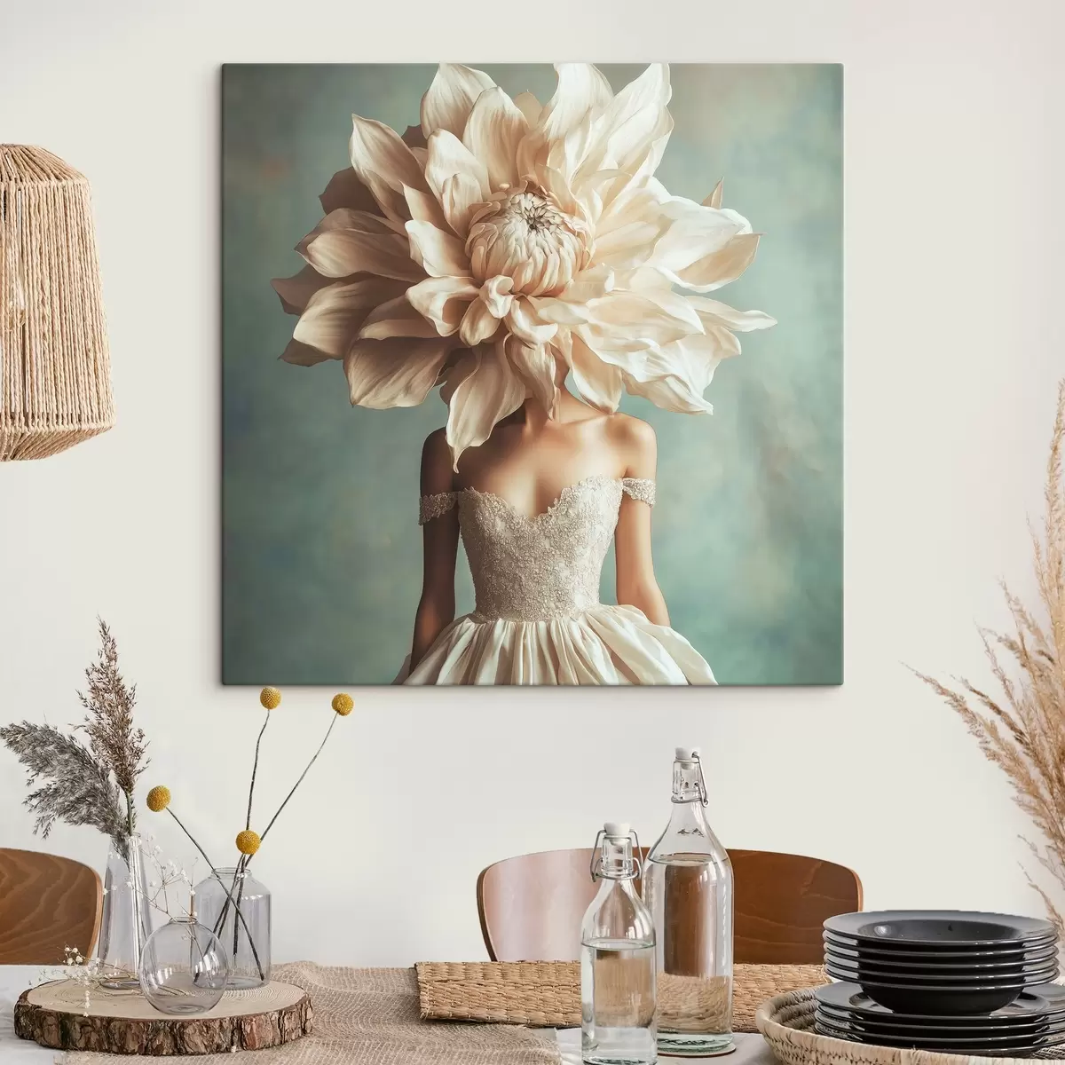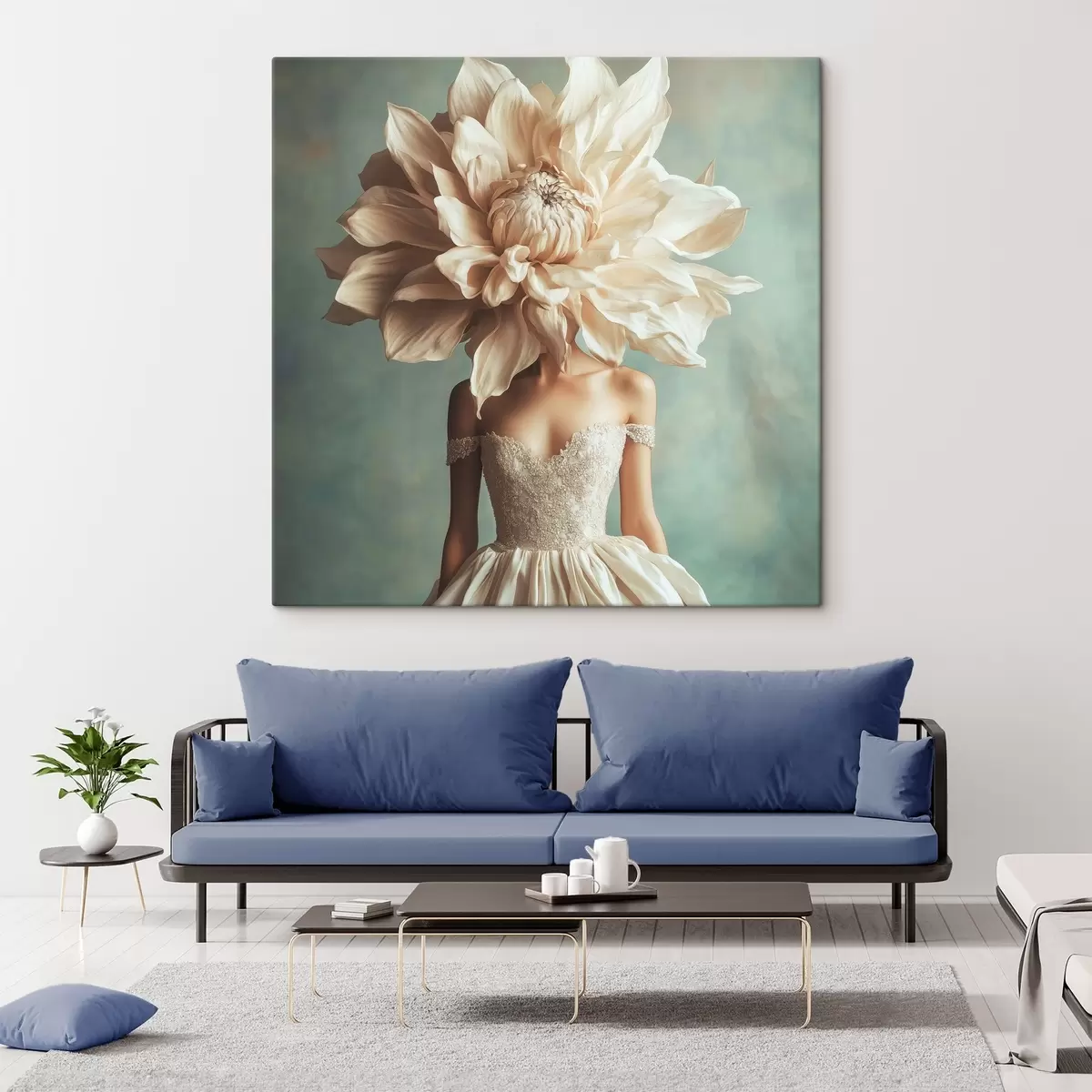 Tableau Une fille en robe avec un chrysanthème sur la tête Nr s41973