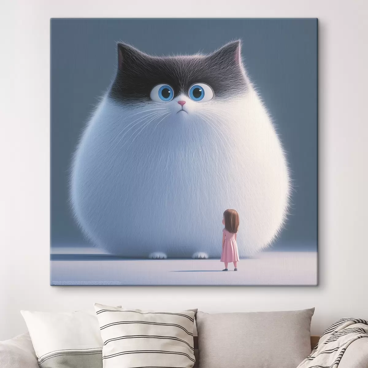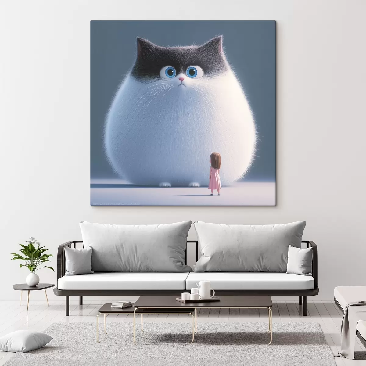 Tableau Un chat pelucheux surpris par une fille dans un style d'illustration s41974