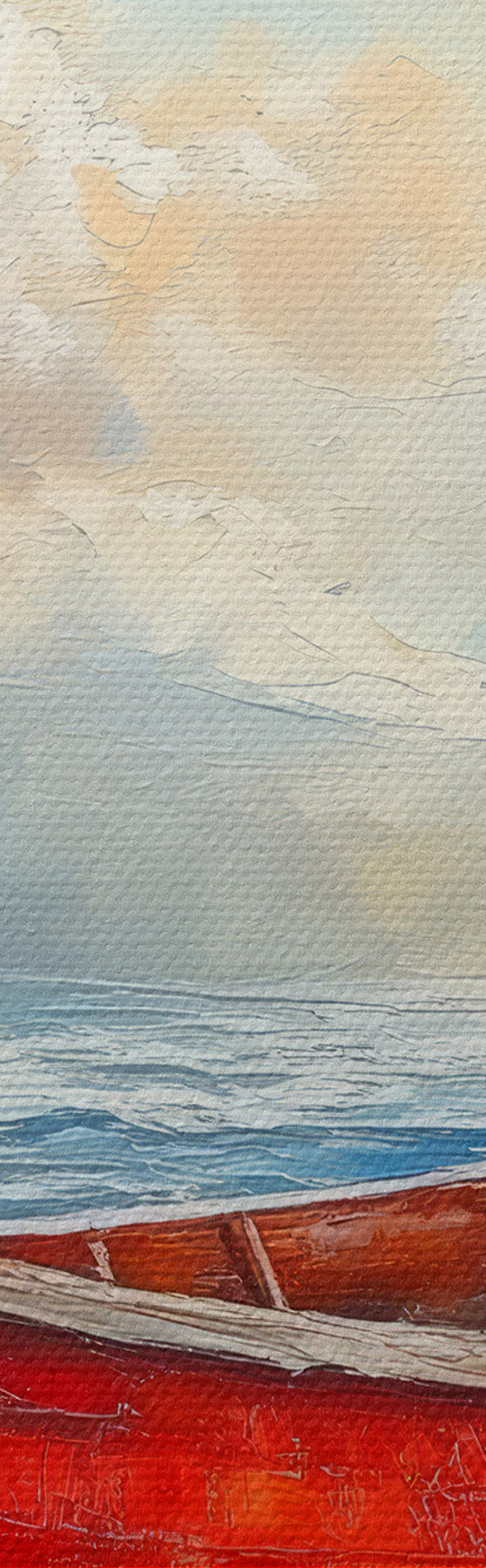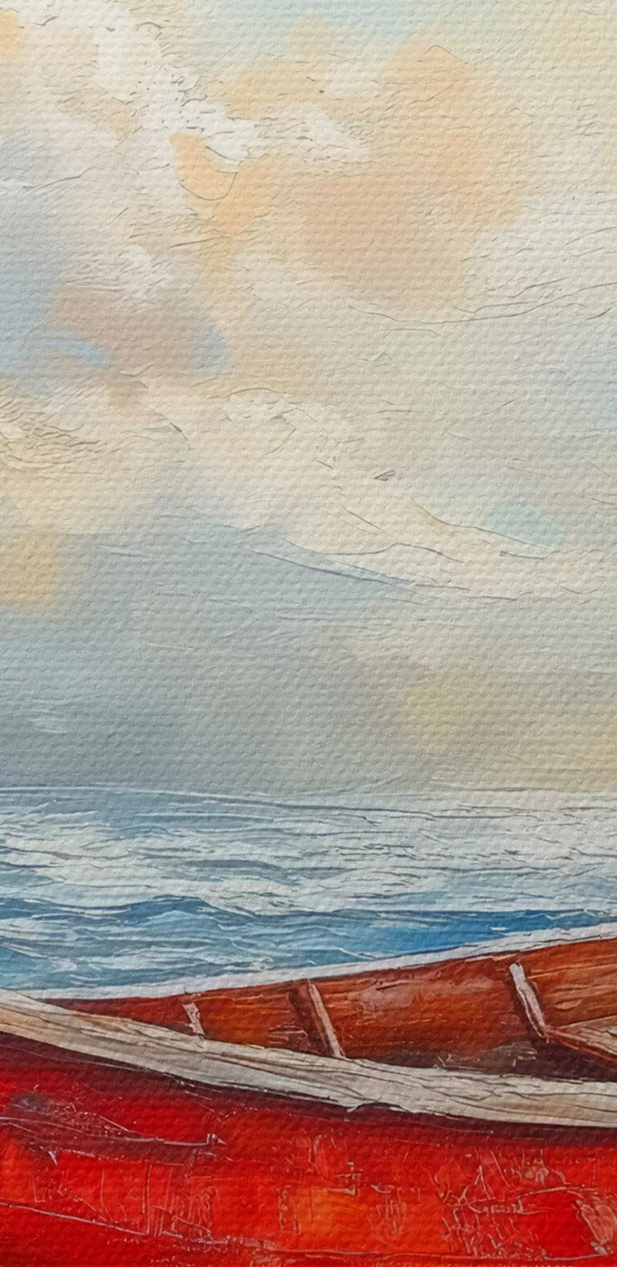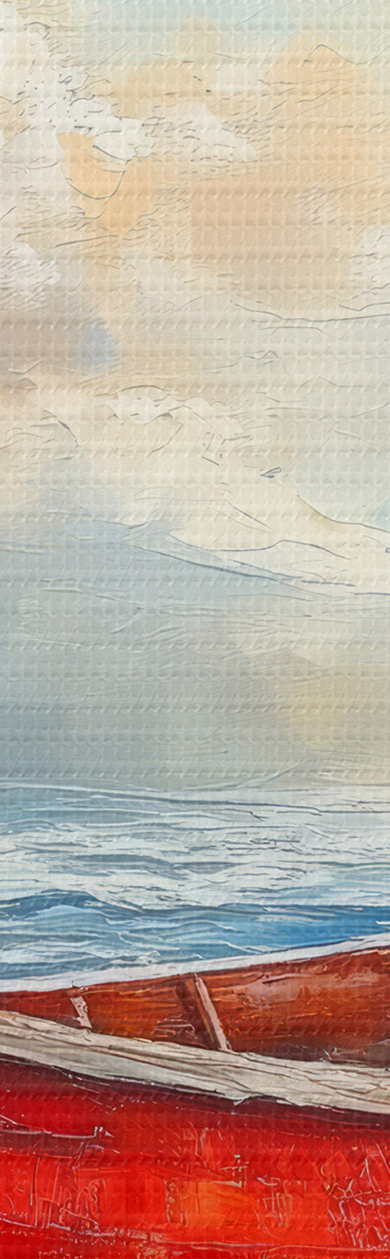 Tableau bateau rouge au bord de la mer, peinture à l'huile Nr s42009