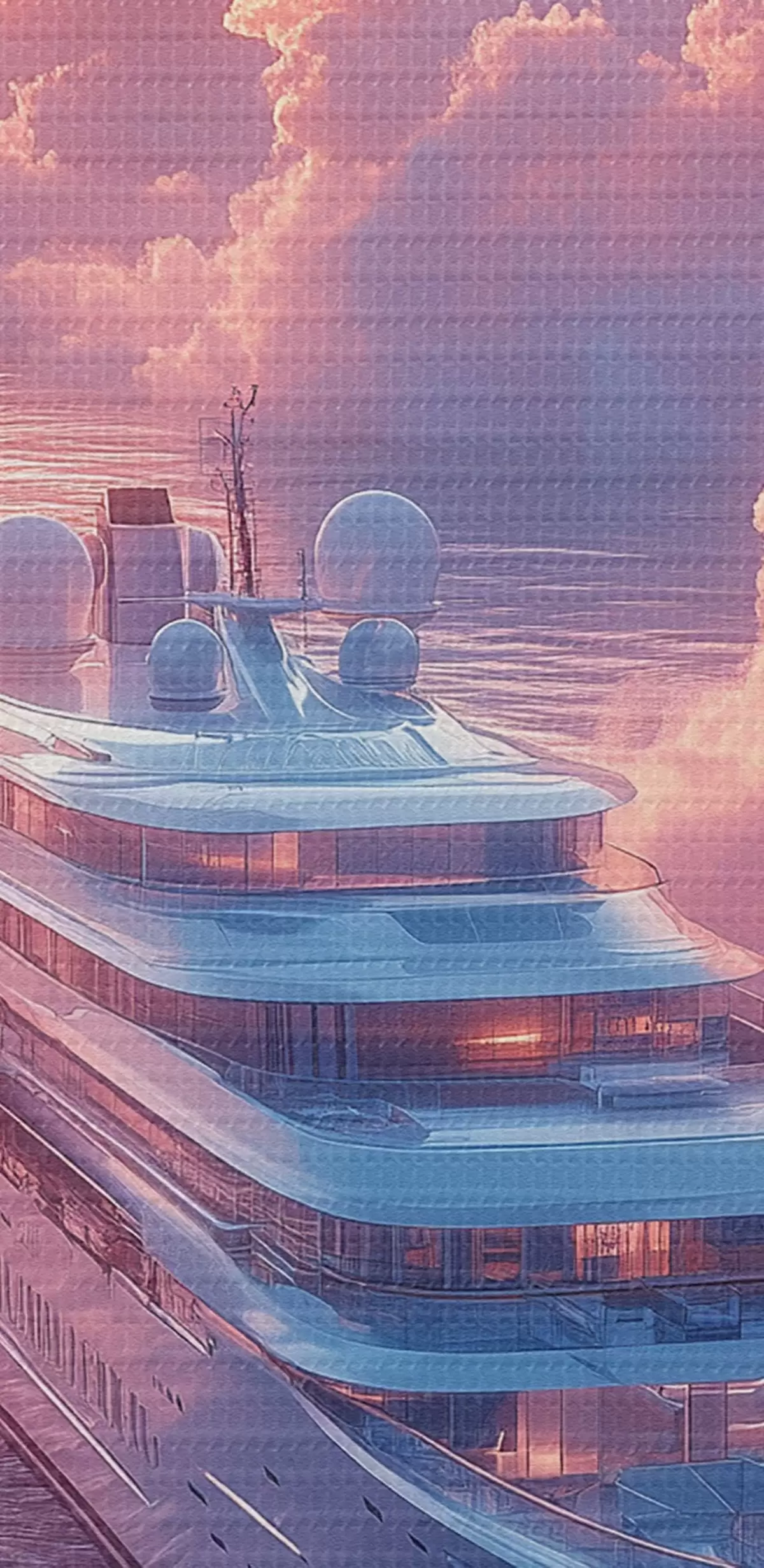Tableau Bateau de croisière sur fond de coucher de soleil rose s42085
