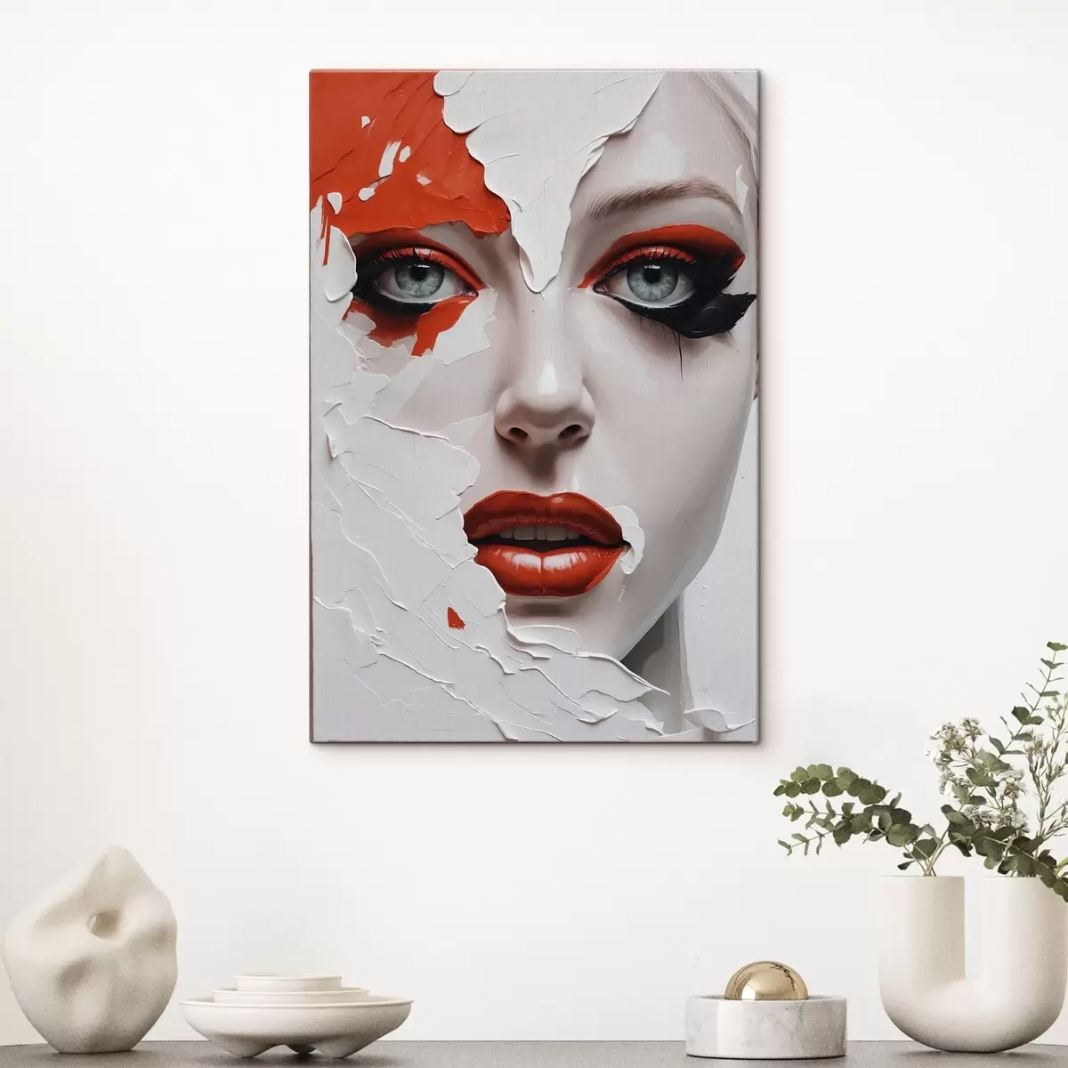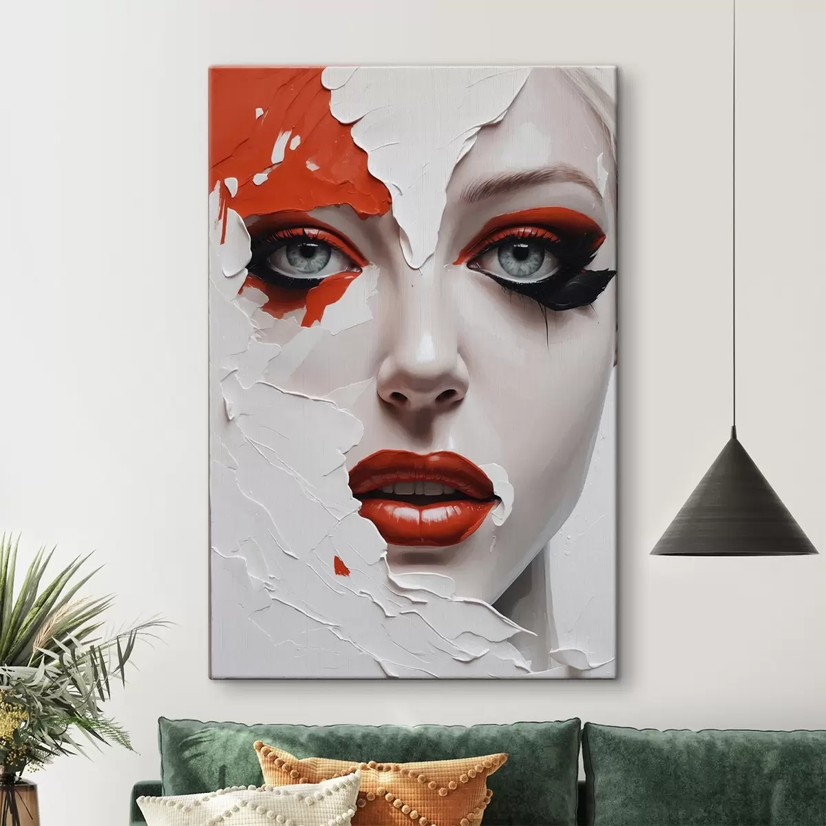 Tableau Visage de fille peint en blanc et orange Nr s42092