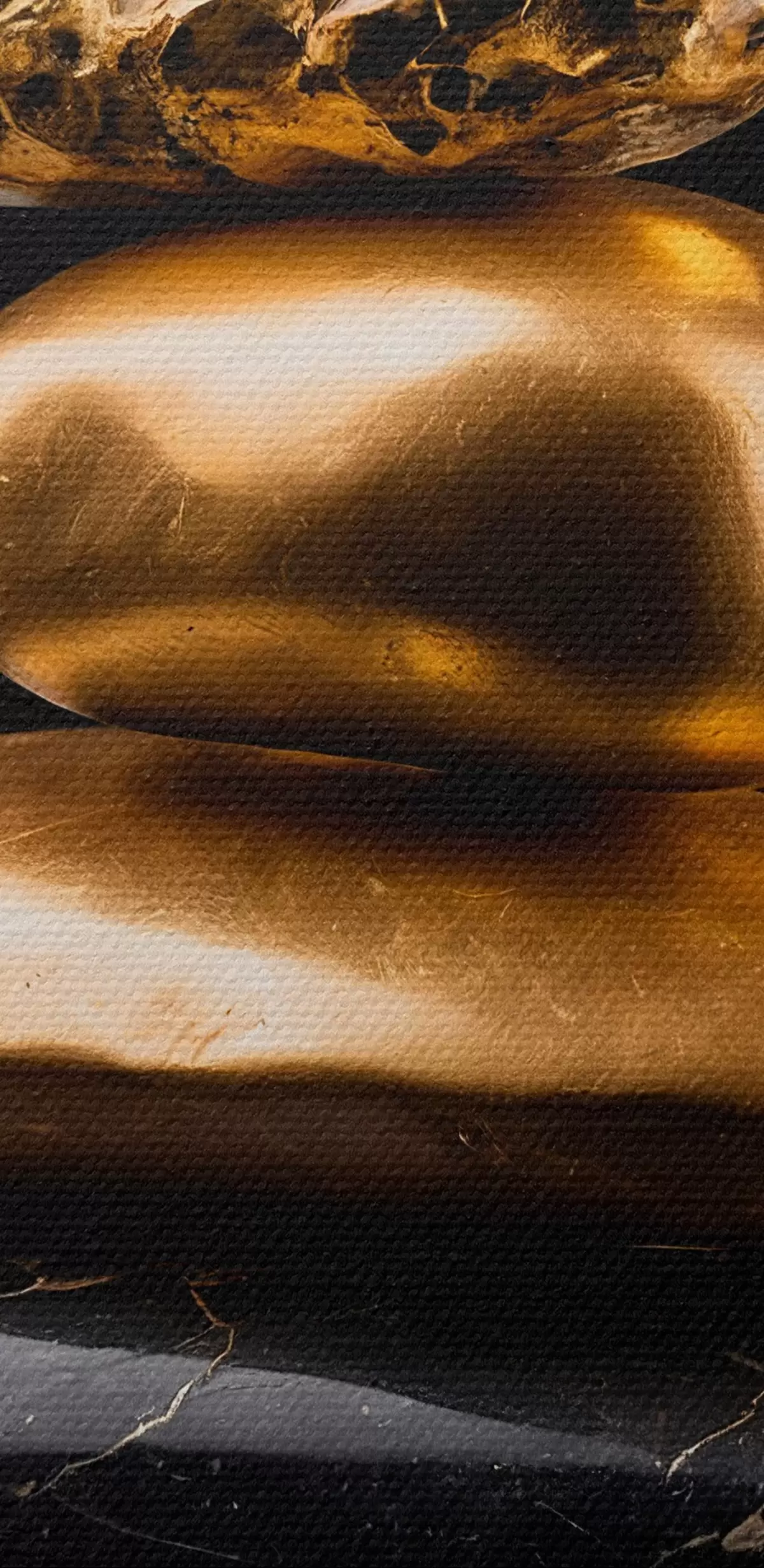 Tableau Rochers noirs et jaunes sur fond sombre s42094