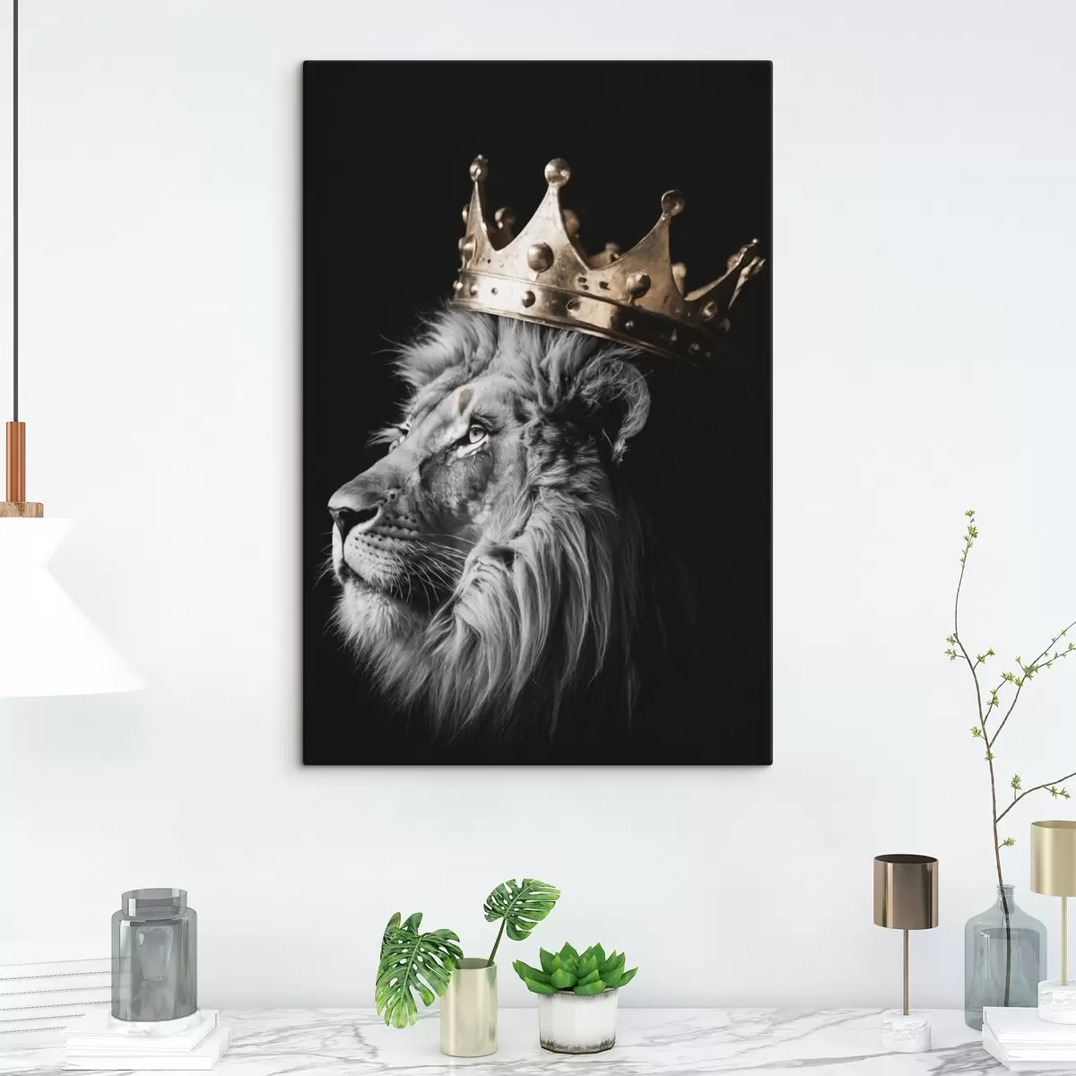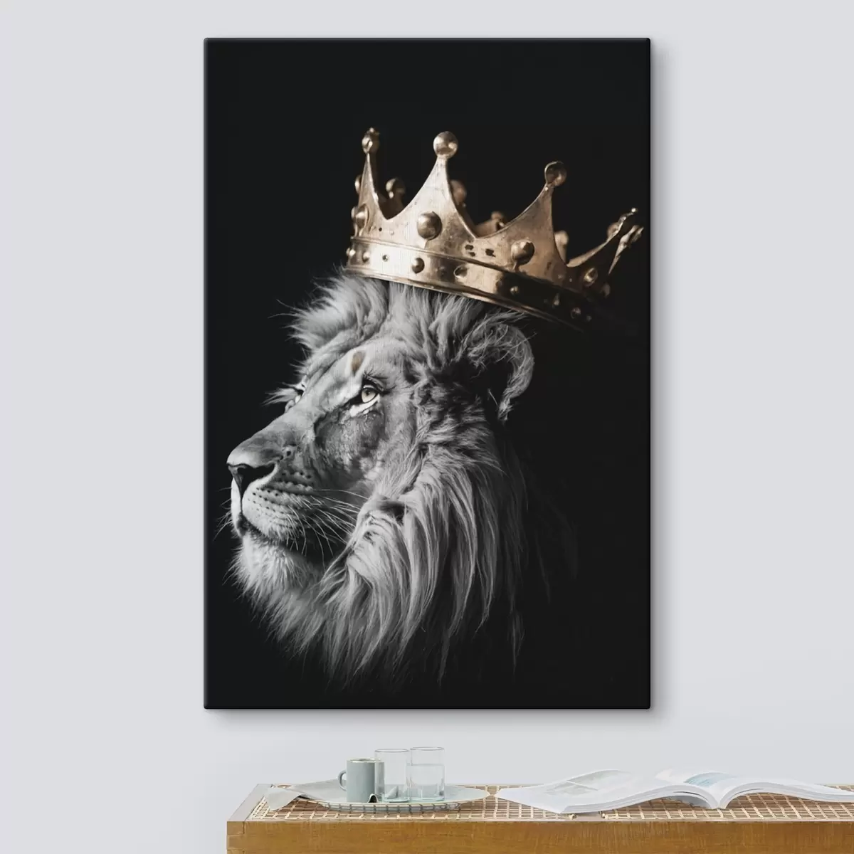 Tableau Lion avec couronne sur fond sombre s42096