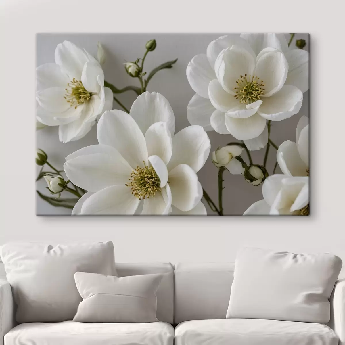 Tableau Fleurs et tiges blanches sur fond clair Nr s42097