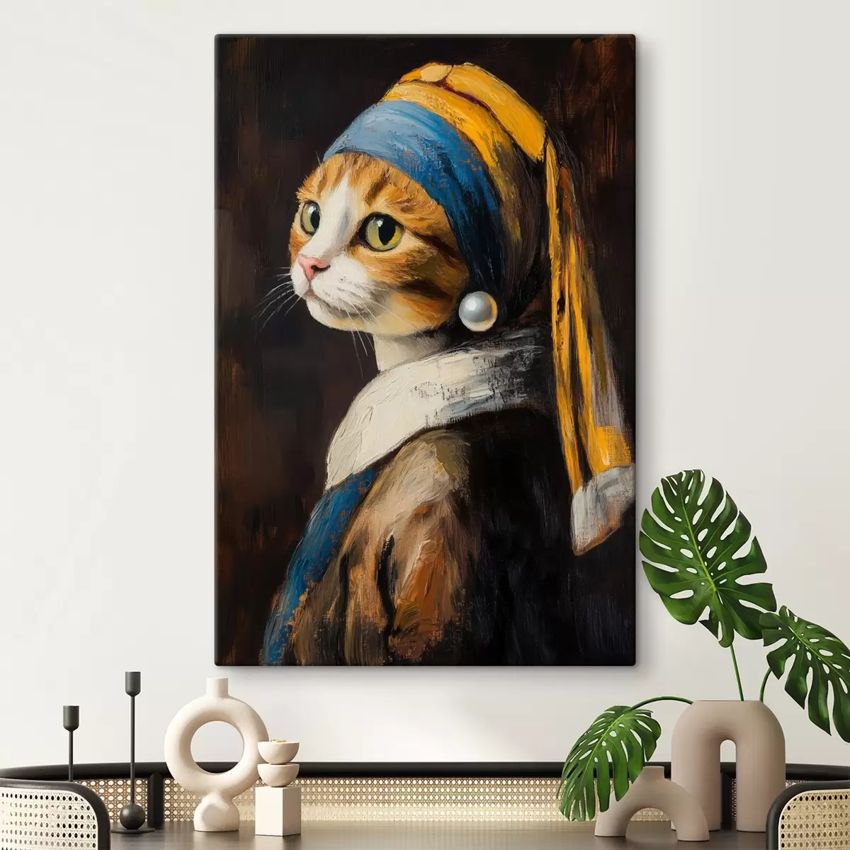 Tableau Un chat avec une boucle d'oreille en perle s42107