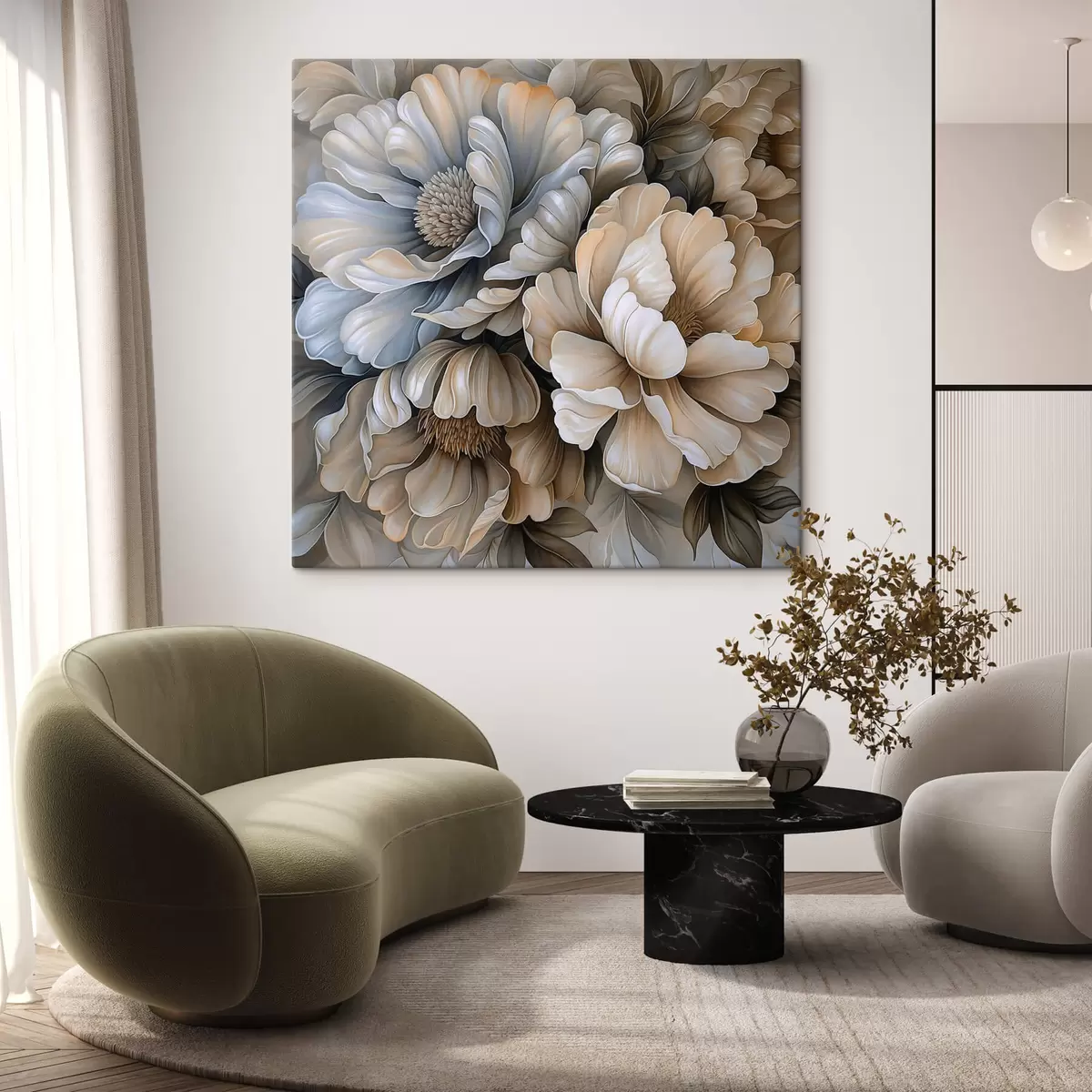 Trois types de matériaux peuvent être commandés : Economic Canvas - matériau dense et durable pour l'impression numérique, identique à la toile de peintre, surface imperméable, reproduction réaliste des détails, matériau à grain moyen. Premium Canvas - la texture ressemble à celle d'une toile de peintre (petits fils entrelacés). Reproduction douce et détaillée de l'image sur une surface mate. Eco-Premium - tissu 100 % coton de haute qualité. Grâce aux fibres naturelles de coton, le matériau est durable et résistant à l'usure. Excellente reproduction des couleurs et des détails.