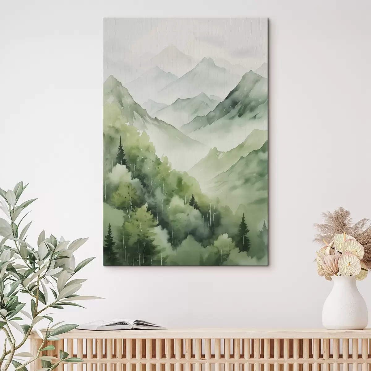 Tableau Forêt de feuillus en montagne imitation aquarelle s42122