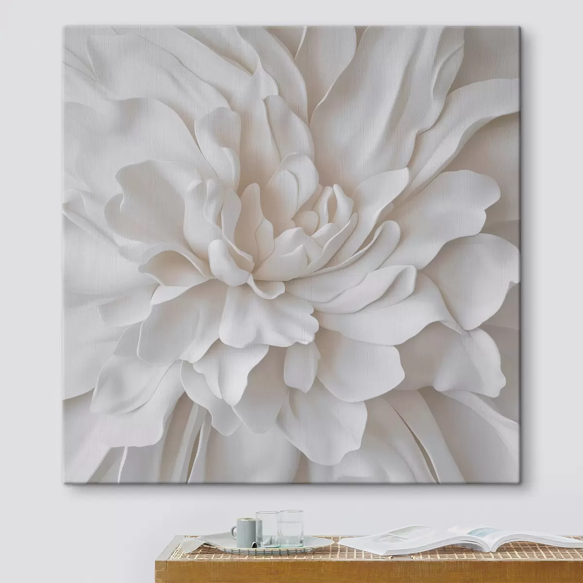 Trois types de matériaux peuvent être commandés : Economic Canvas - matériau dense et durable pour l'impression numérique, identique à la toile de peintre, surface imperméable, reproduction réaliste des détails, matériau à grain moyen. Premium Canvas - la texture ressemble à celle d'une toile de peintre (petits fils entrelacés). Reproduction douce et détaillée de l'image sur une surface mate. Eco-Premium - tissu 100 % coton de haute qualité. Grâce aux fibres naturelles de coton, le matériau est durable et résistant à l'usure. Excellente reproduction des couleurs et des détails.