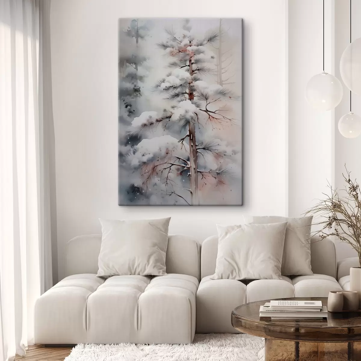 Tableau Arbre dans une forêt enneigée imitation aquarelle s42139