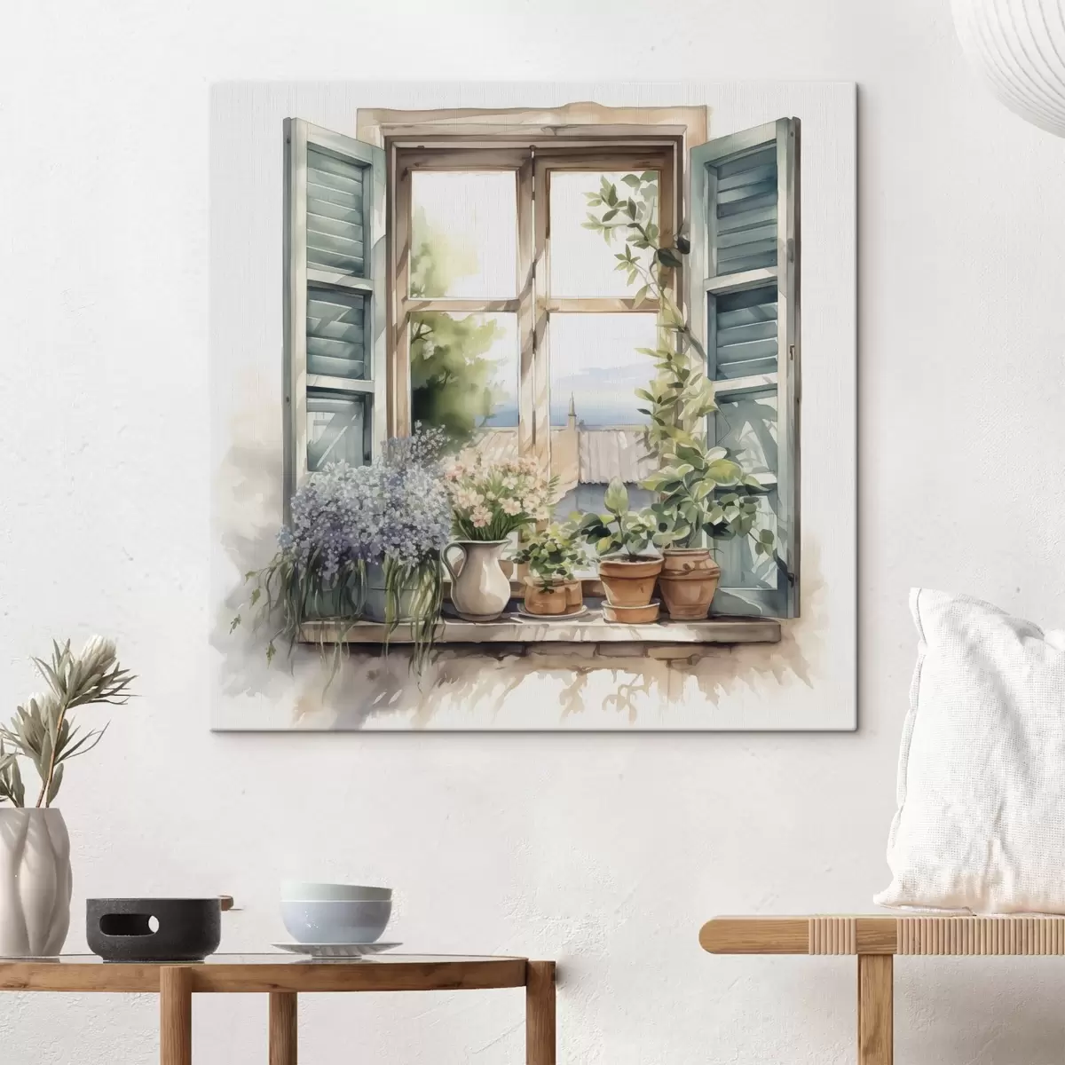 Tableau Végétation sur le rebord de la fenêtre imitation aquarelle s42144