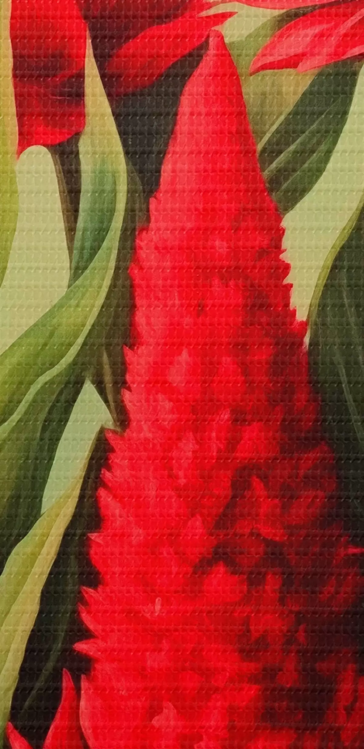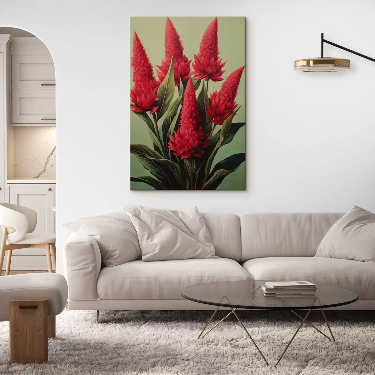 Tableau Fleurs rouges sur fond vert Nr s42166