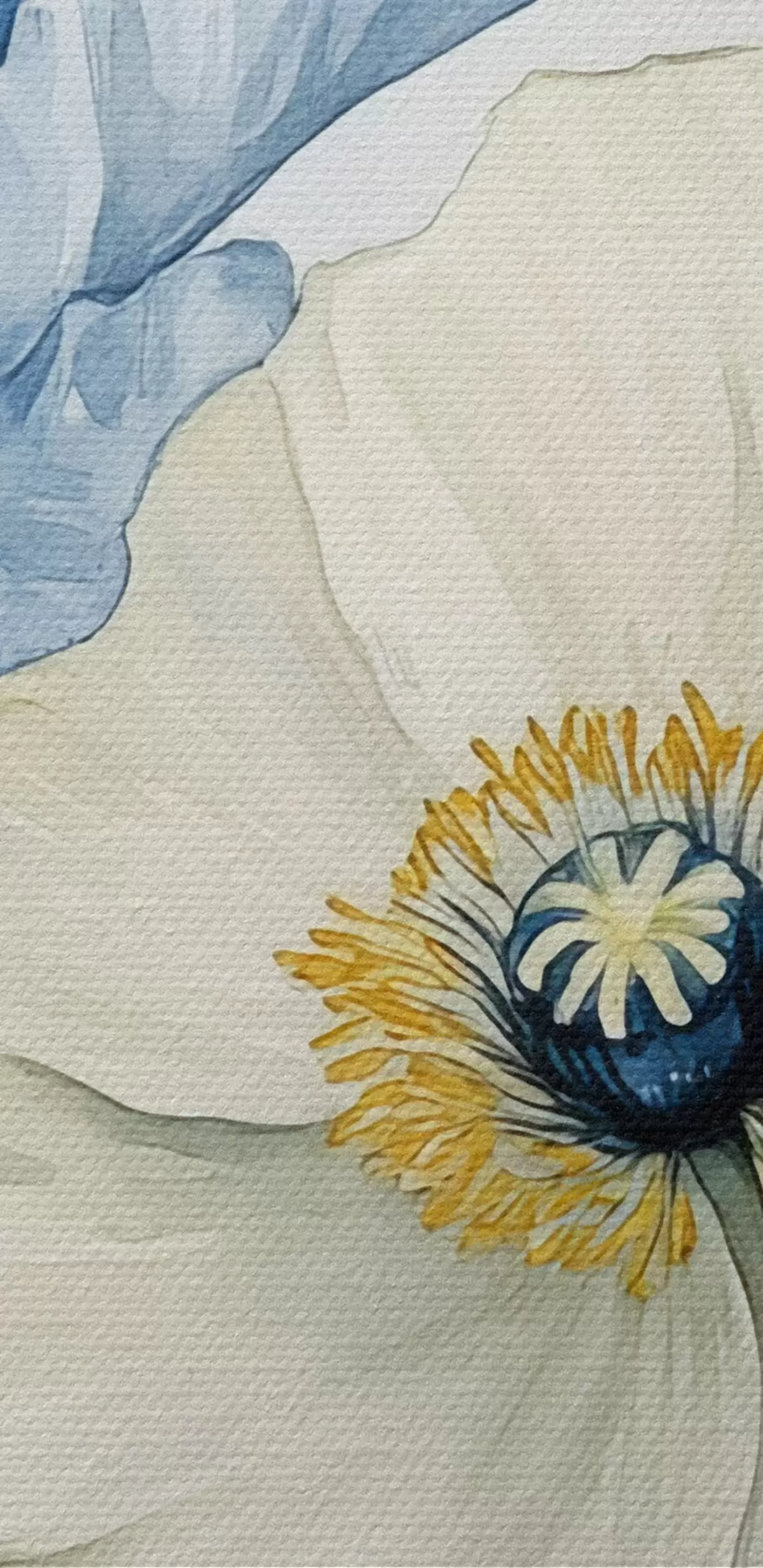 Tableau Coquelicots bleus et blancs sur fond d'aquarelle Nr s42191