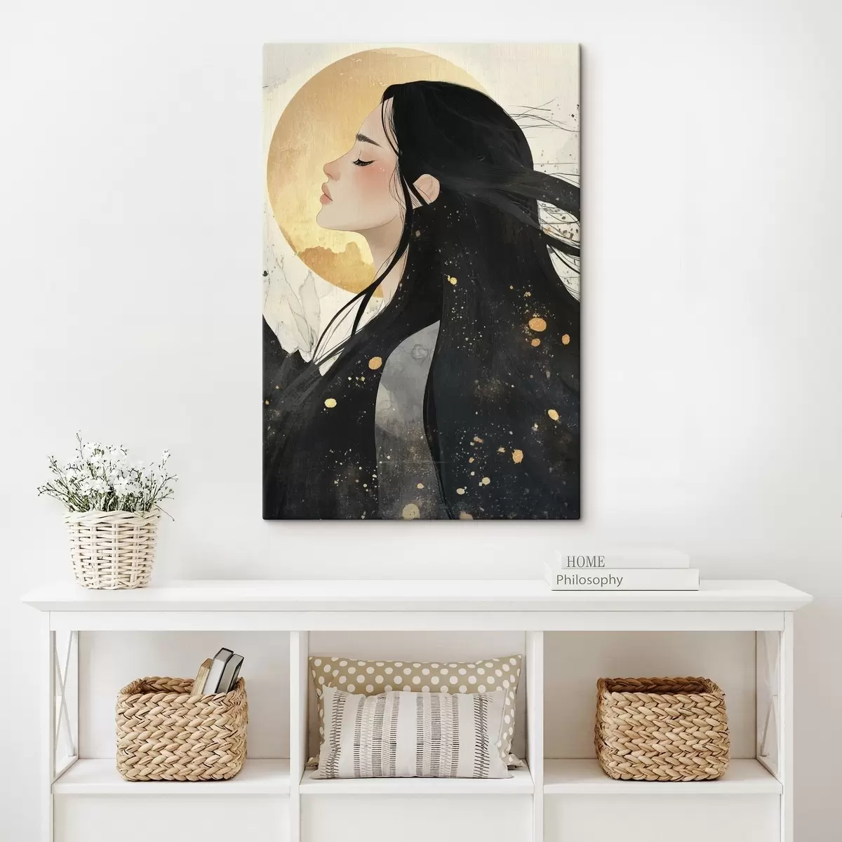Tableau Belle fille aux cheveux noirs, style oriental, soleil Nr s42194