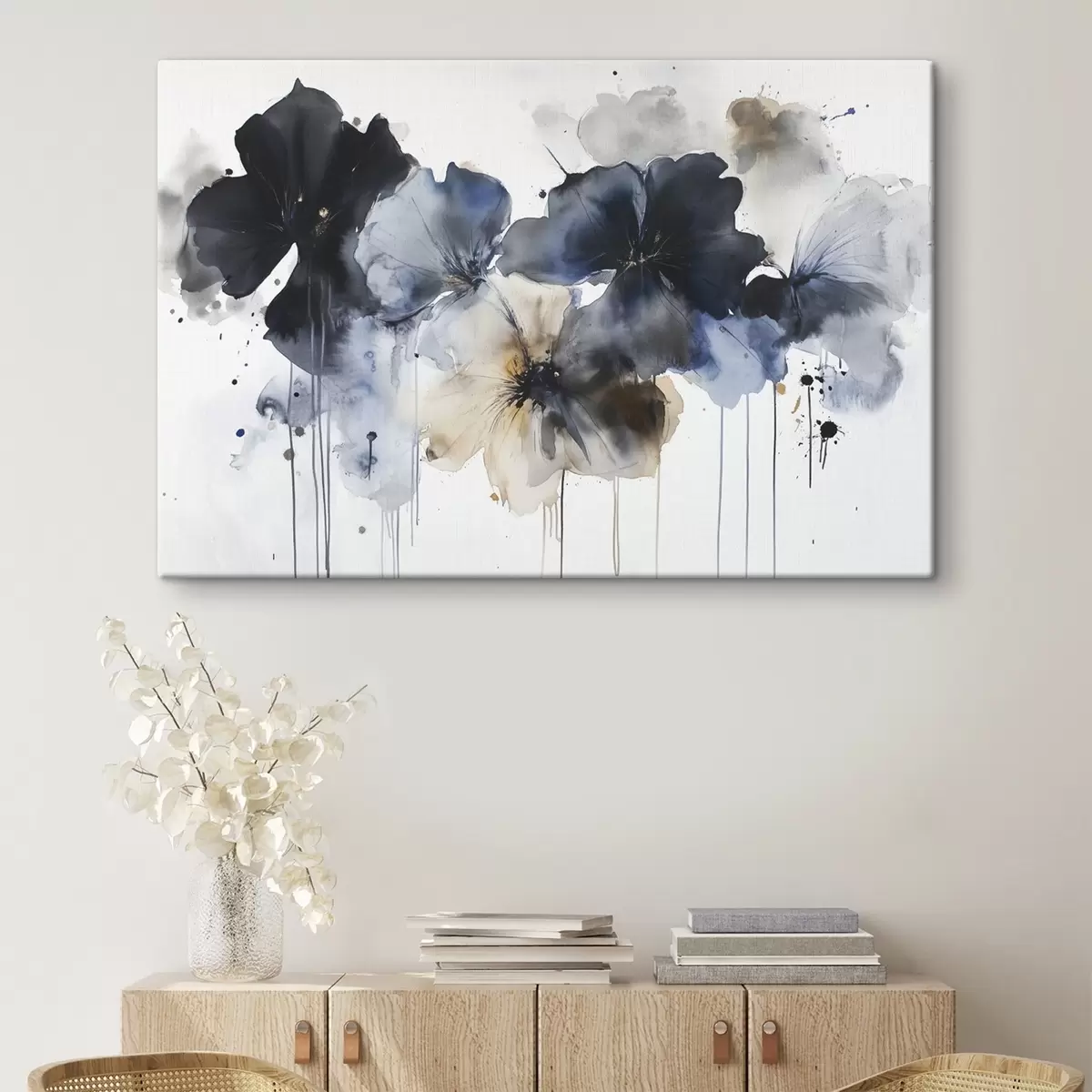 Tableau Aquarelle de fleurs, style fluide, couleurs bleues s42207