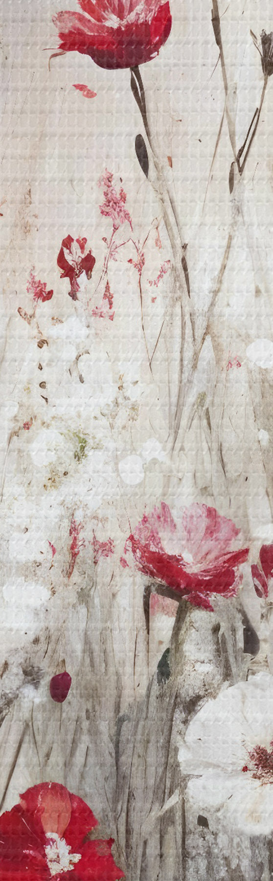 Tableau Imitation abstraite de peinture à l'huile d'un champ de coquelicots et de marguerites rouges et blancs sur un fond texturé gris Nr s42213