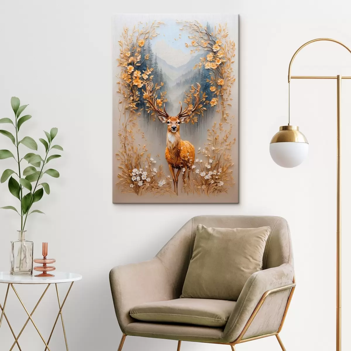 Tableau Cerf avec de grands bois sur fond de forêt Nr s42252