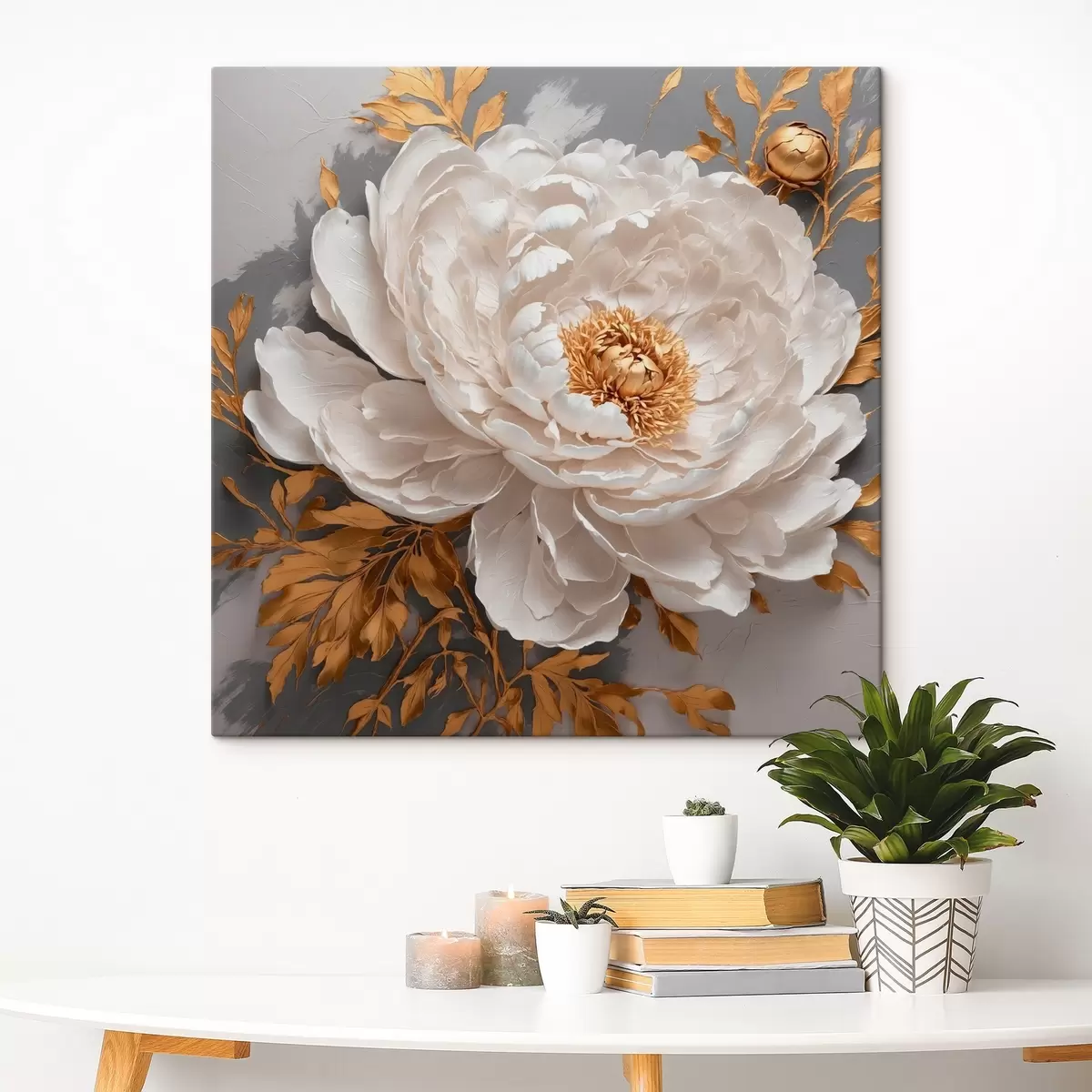 Tableau Pivoine blanche sur fond gris Nr s42260