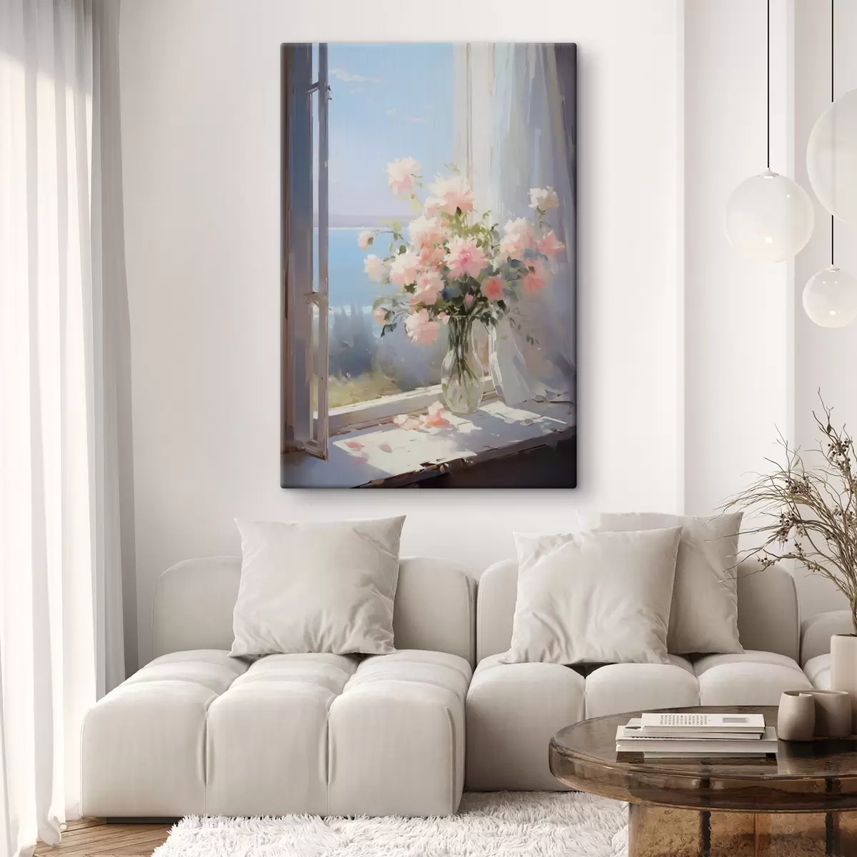 Tableau Bouquet de fleurs délicates dans un vase en verre imitation peinture s42352