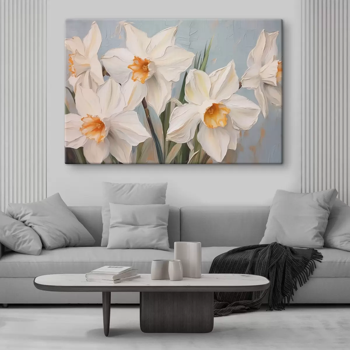 Tableau Jonquilles blanches grande imitation de peinture Nr s42355