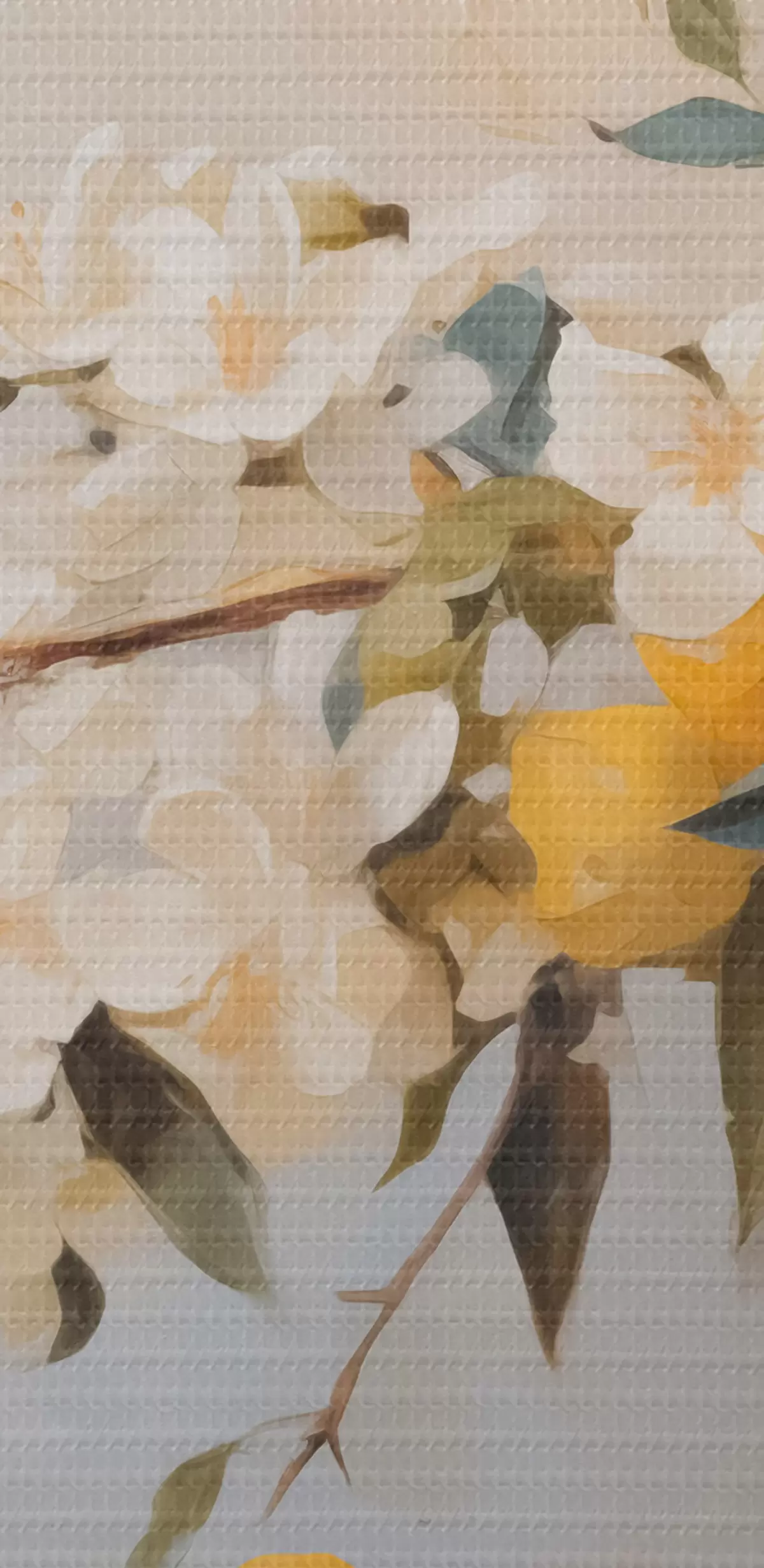 Tableau Vase avec branches de fleurs blanches et peinture imitation citron s42360