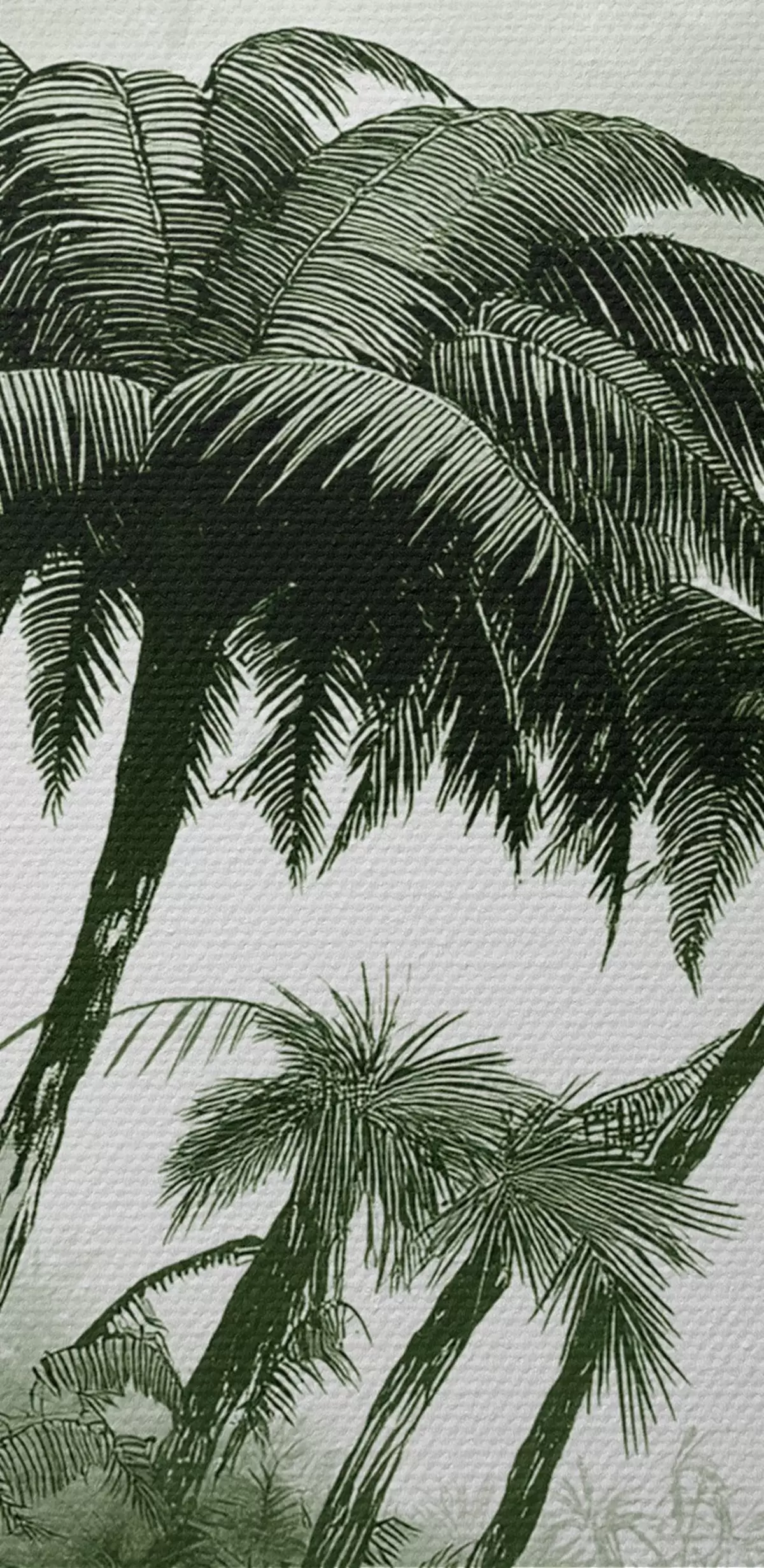 Tableau Jungle forestière dans la brume, palmiers, nature, couleurs vertes Nr s42372v1