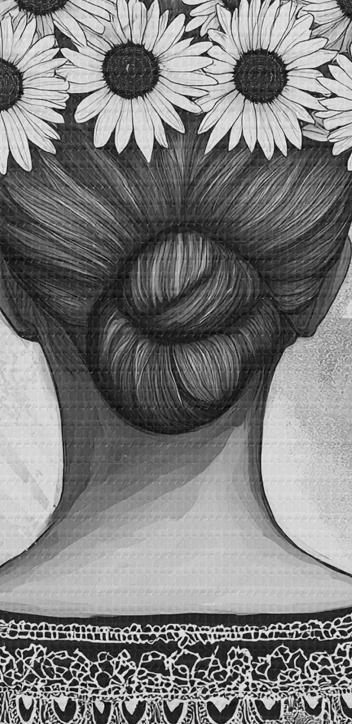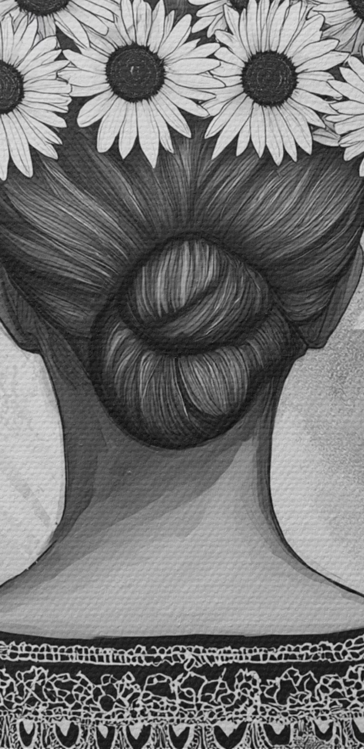 Tableau Trois femmes en vêtements ethniques, dessin au crayon, tournesols s42377