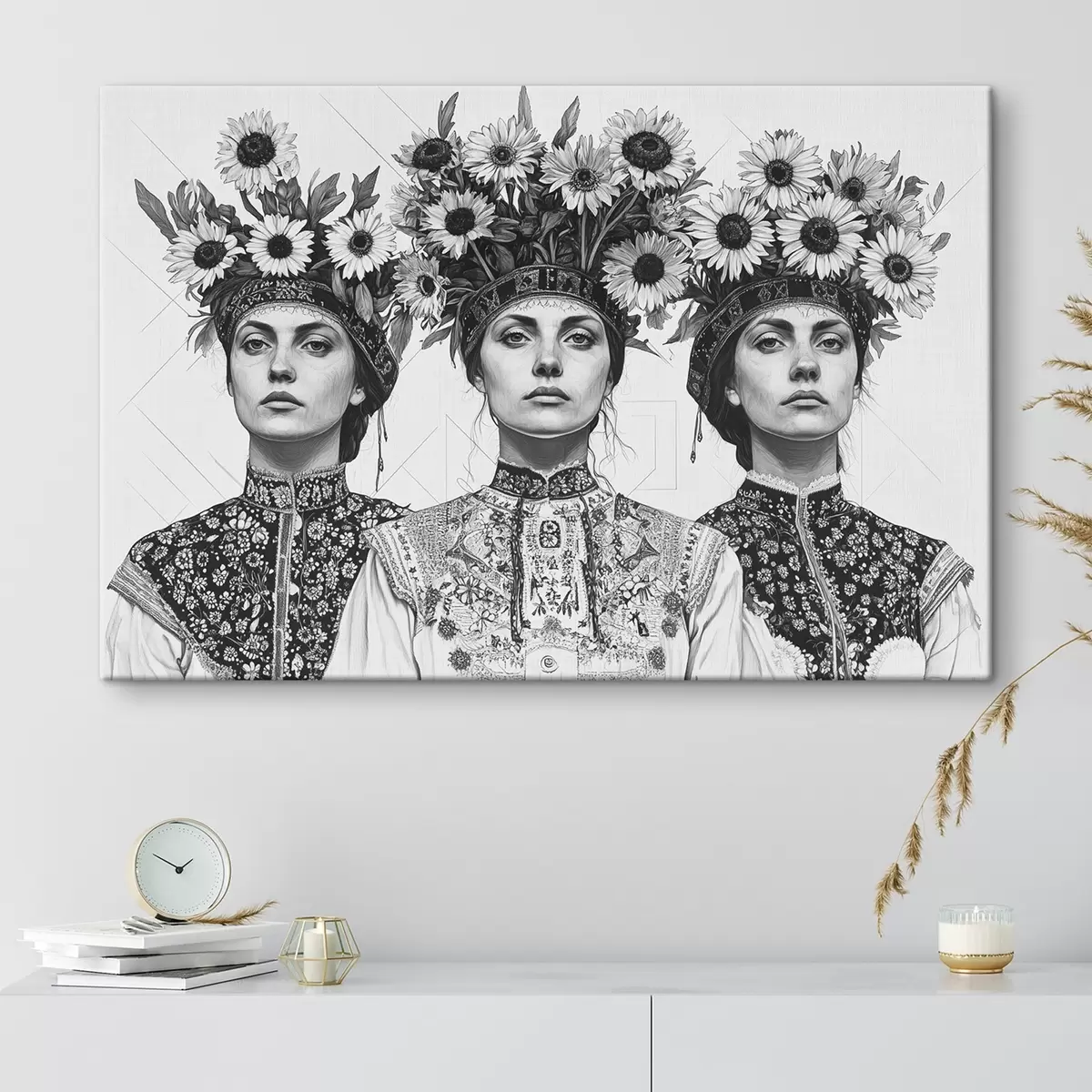 Tableau Femmes ukrainiennes en tenues ethniques avec des couronnes de fleurs Nr s42379