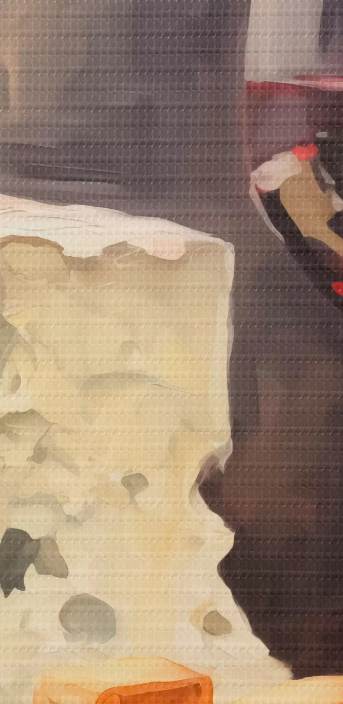 Tableau Verre de vin rouge et fromages imitation peinture s42415