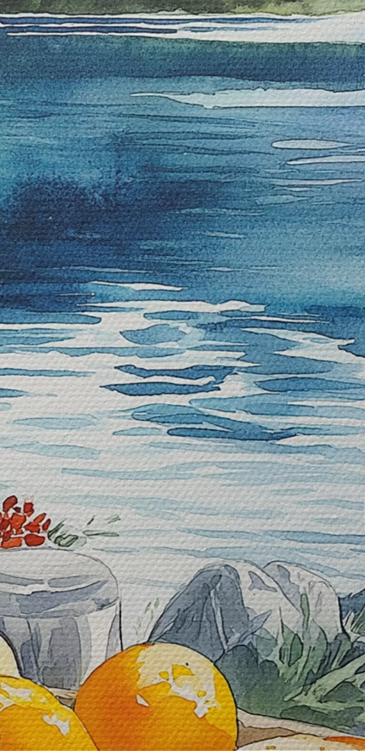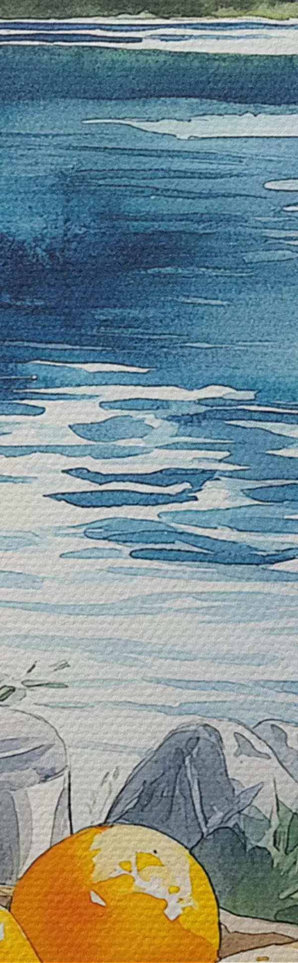 Tableau Voyage, vie en plein air, style aquarelle, Norvège, petit déjeuner Nr s42430