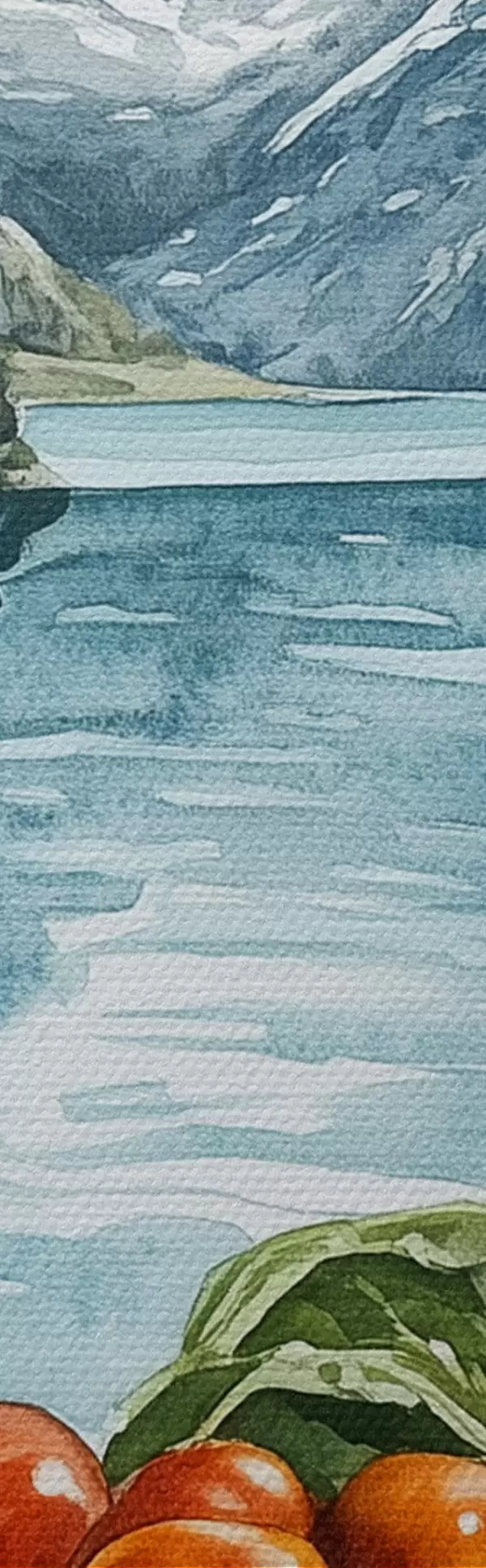 Tableau Voyage, paysages de nature, style aquarelle, Norvège, petit déjeuner, van Nr s42431