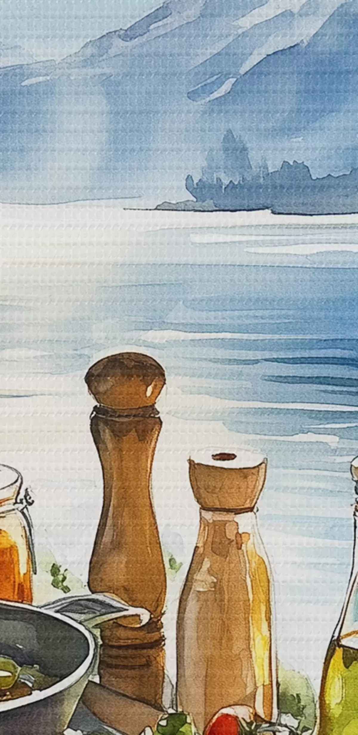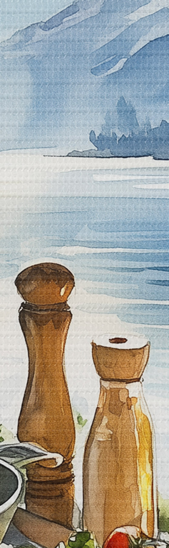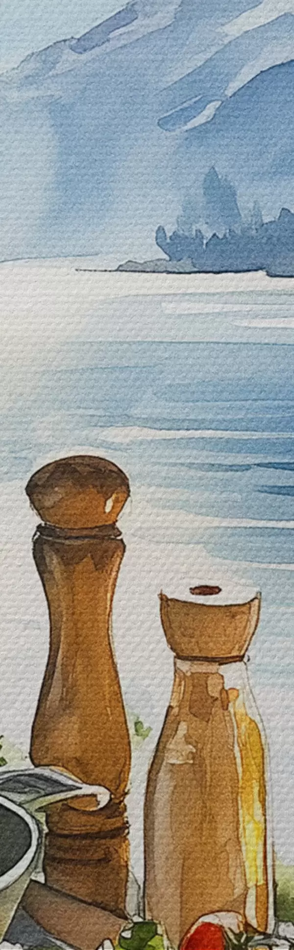 Tableau Belle matinée d'été, lac, style aquarelle, petit déjeuner, voyage Nr s42433