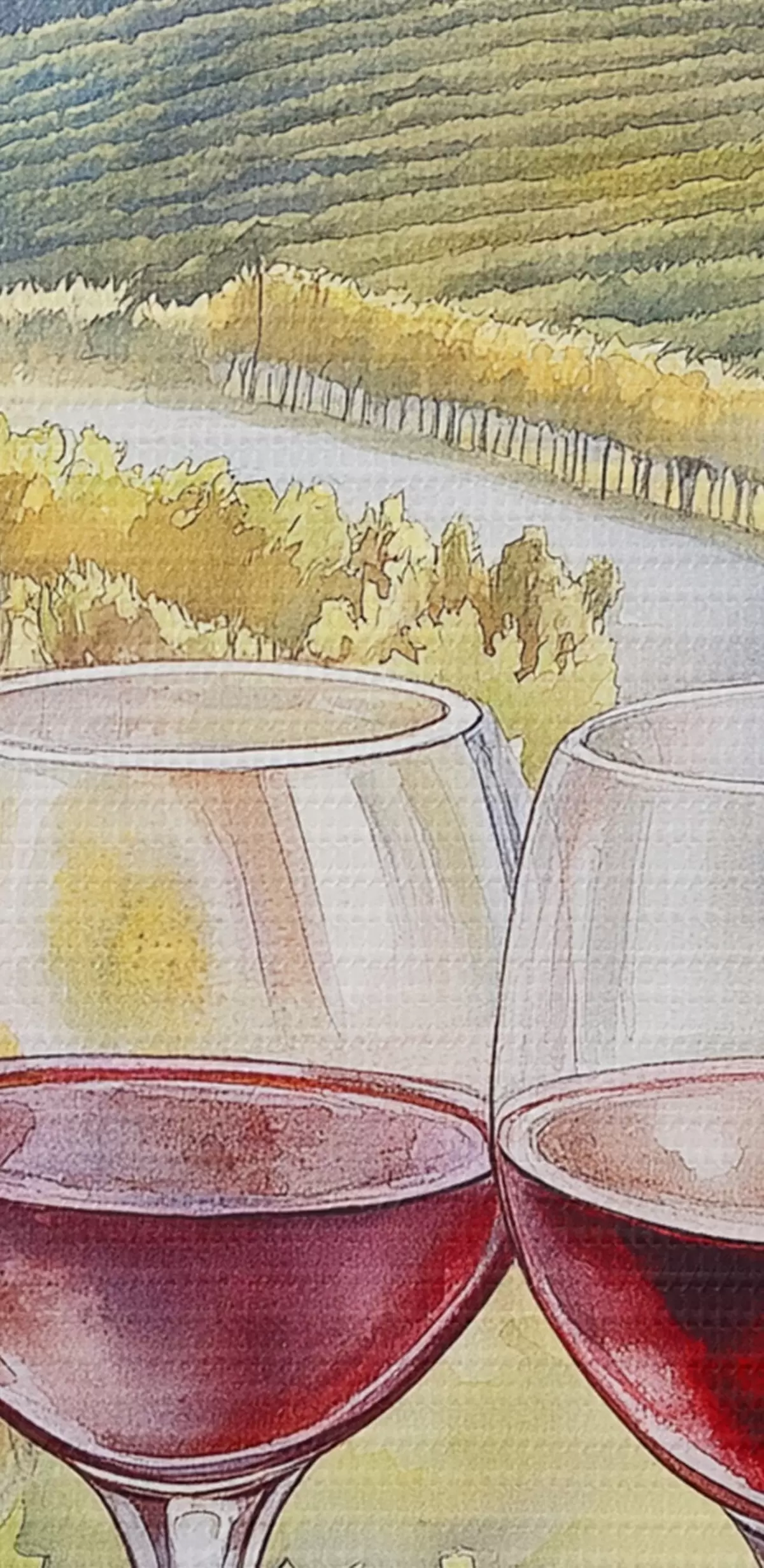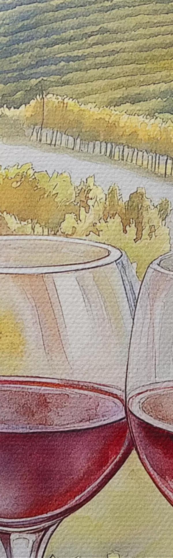 Tableau Coucher de soleil en Toscane, vignoble, architecture ancienne, aquarelle, Italie s42446