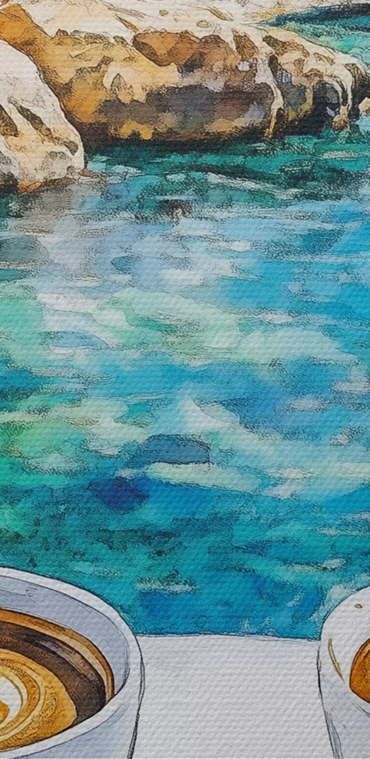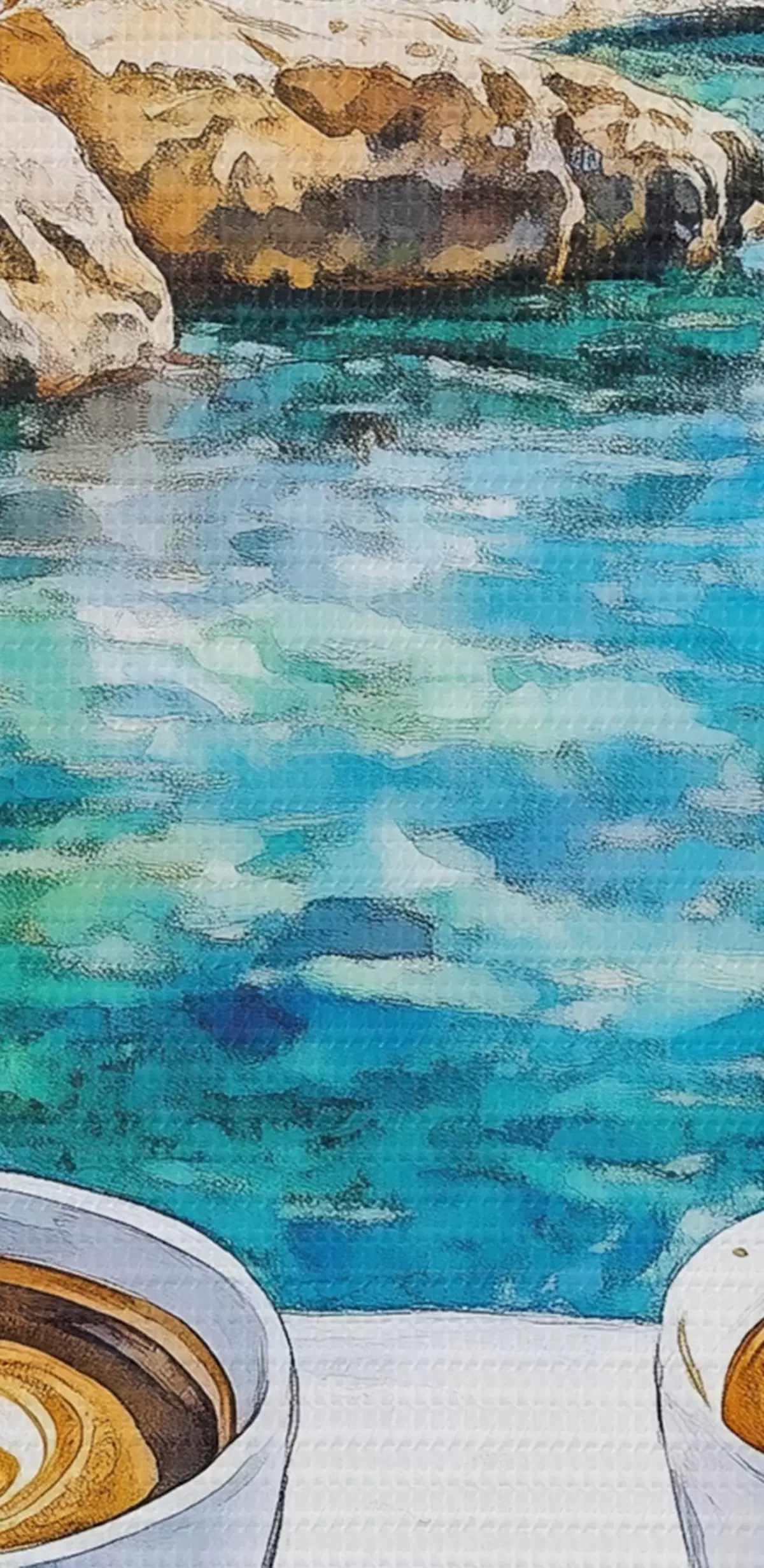 Tableau Grèce esthétique, tasses de café, mer bleue, vieille ville, voyage Nr s42447