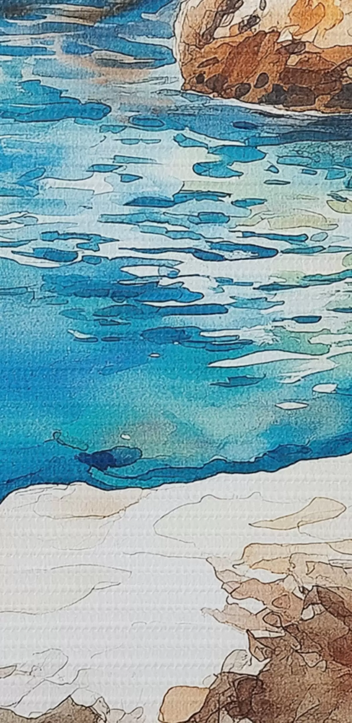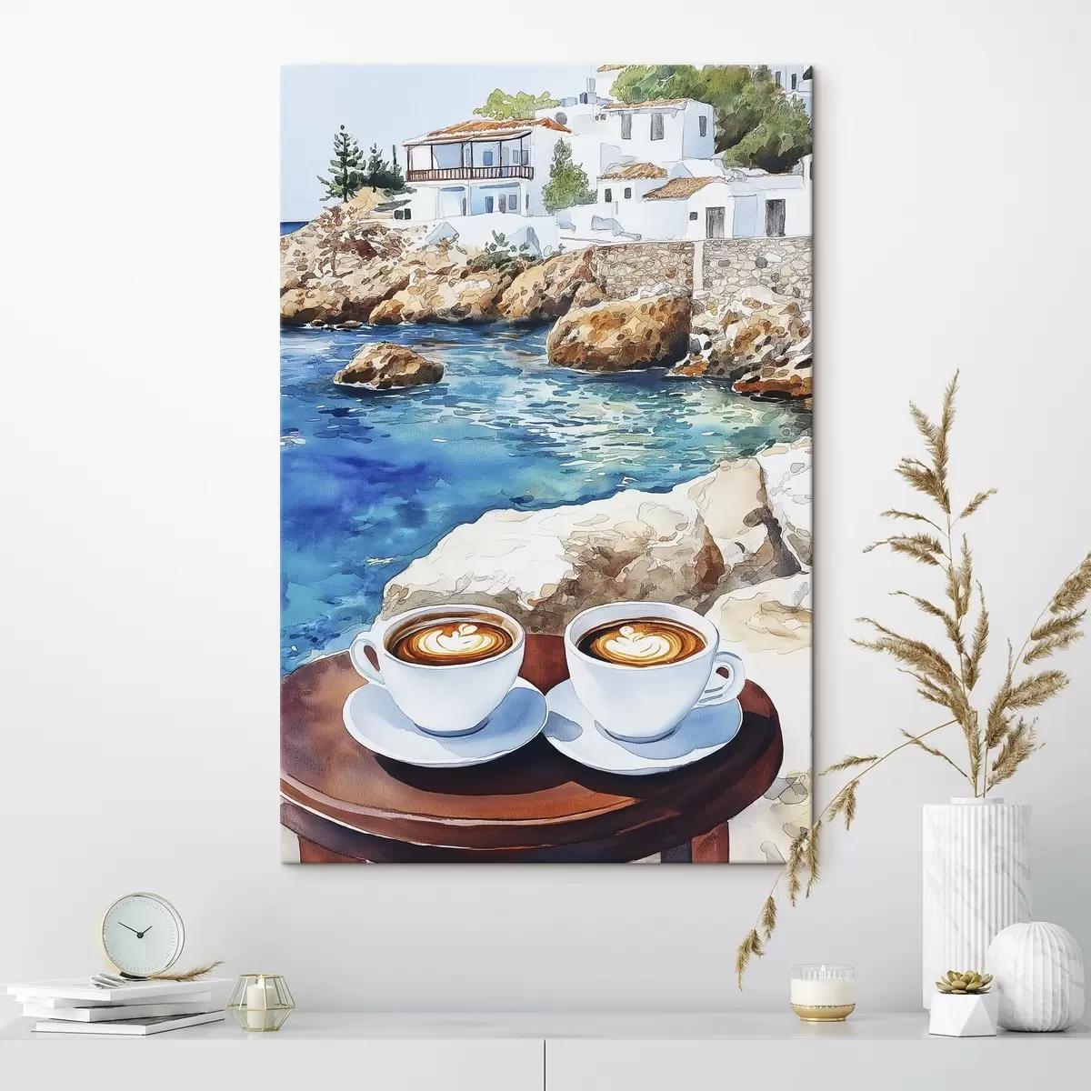 Tableau Aquarelle bord de mer avec tasses de café, été Nr s42449