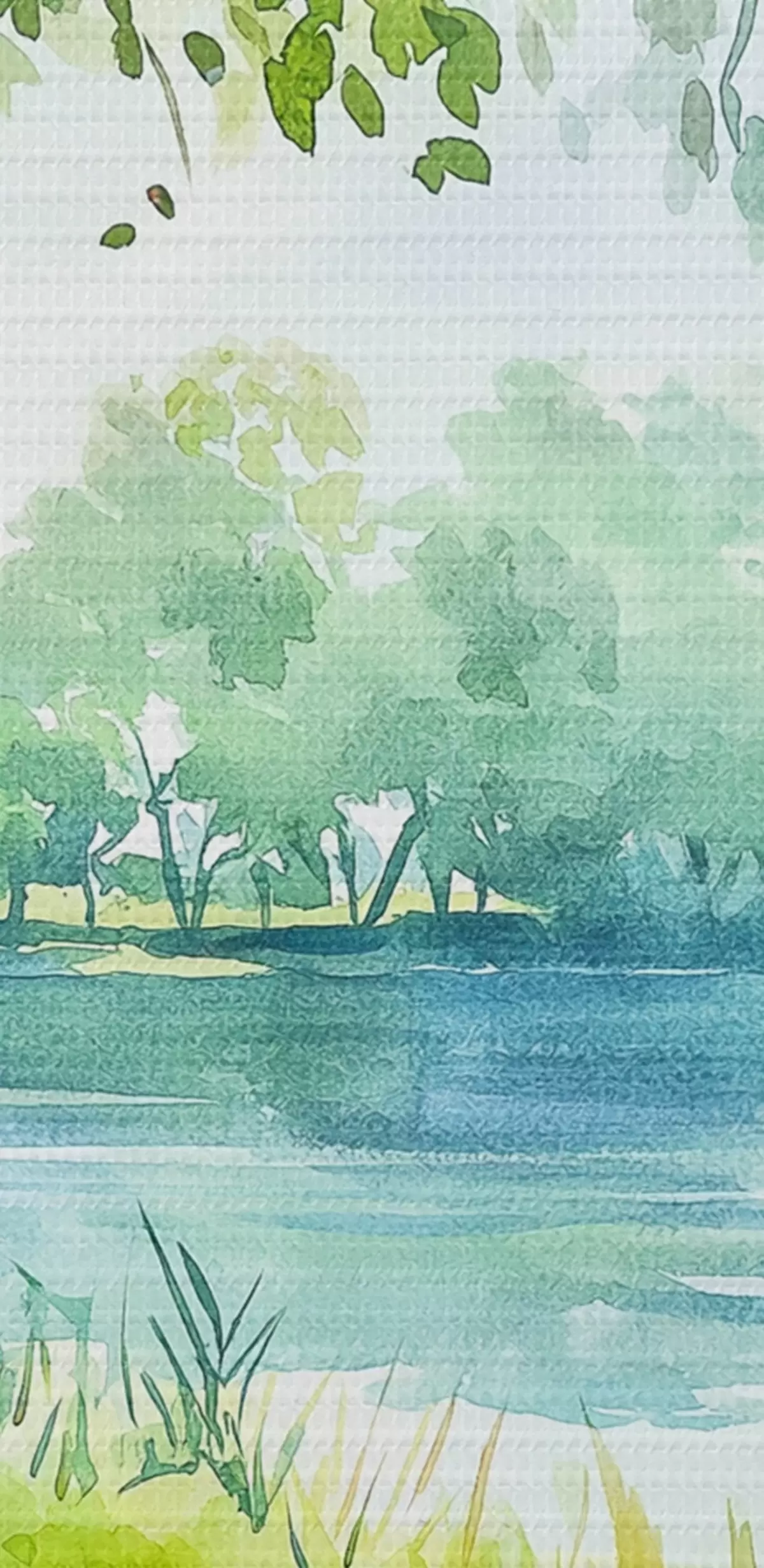 Tableau Esthétique du pique-nique, nature estivale, lac, romantique, style aquarelle s42450