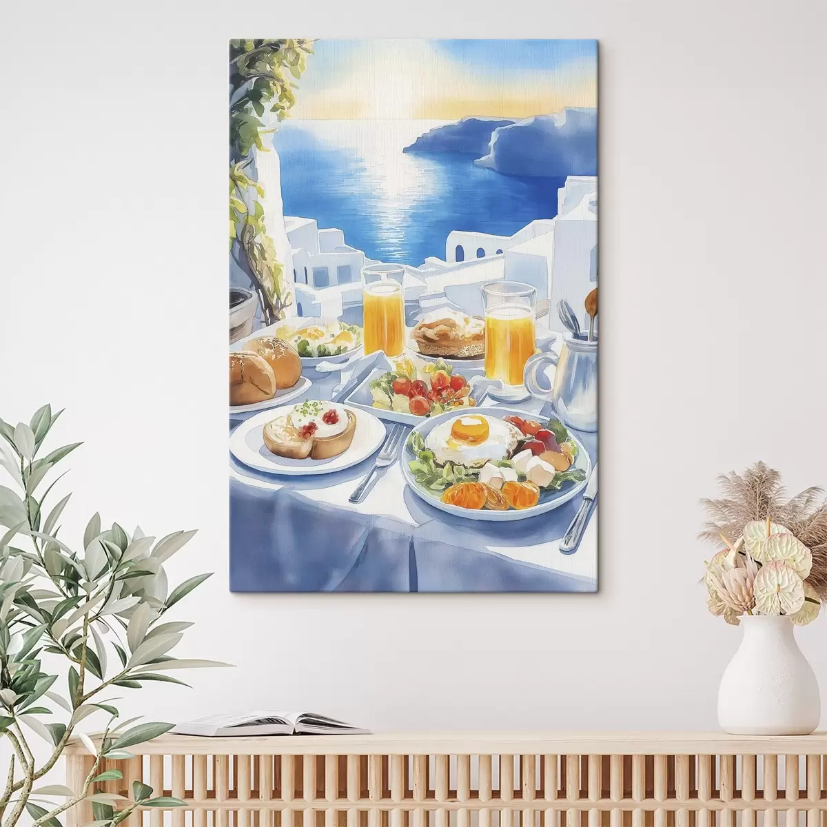 Tableau Paysages de Santorin, petit déjeuner, style aquarelle, vieille ville Nr s42454